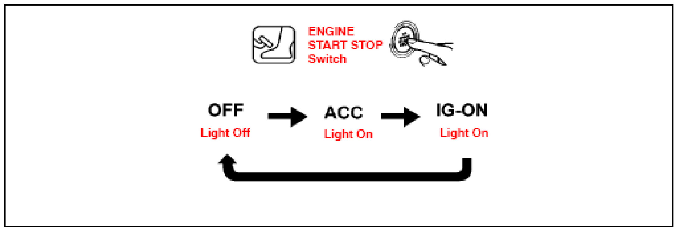 - Press the Engine Start/Stop switch once and check that the indicator light goes OFF.