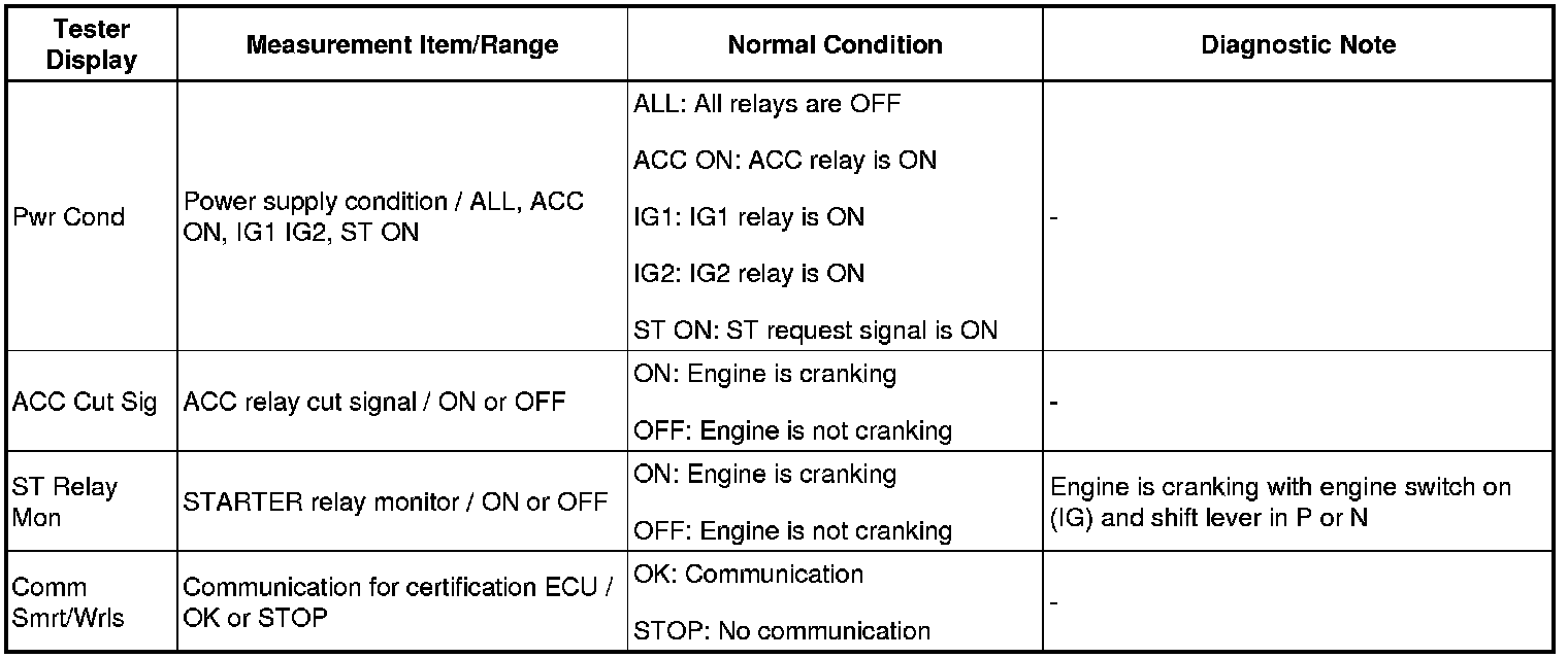 2GR-FE STARTING: SMART KEY SYSTEM: DATA LIST / ACTIVE TEST