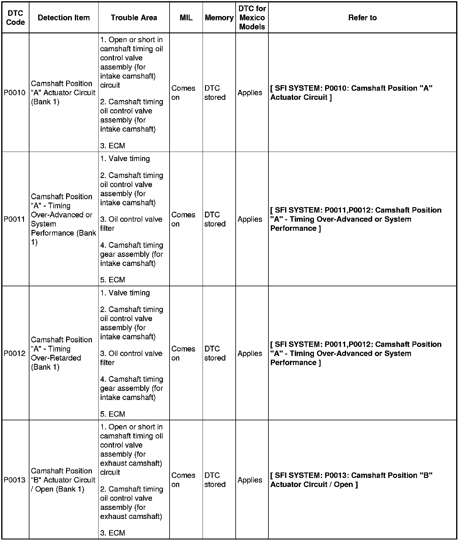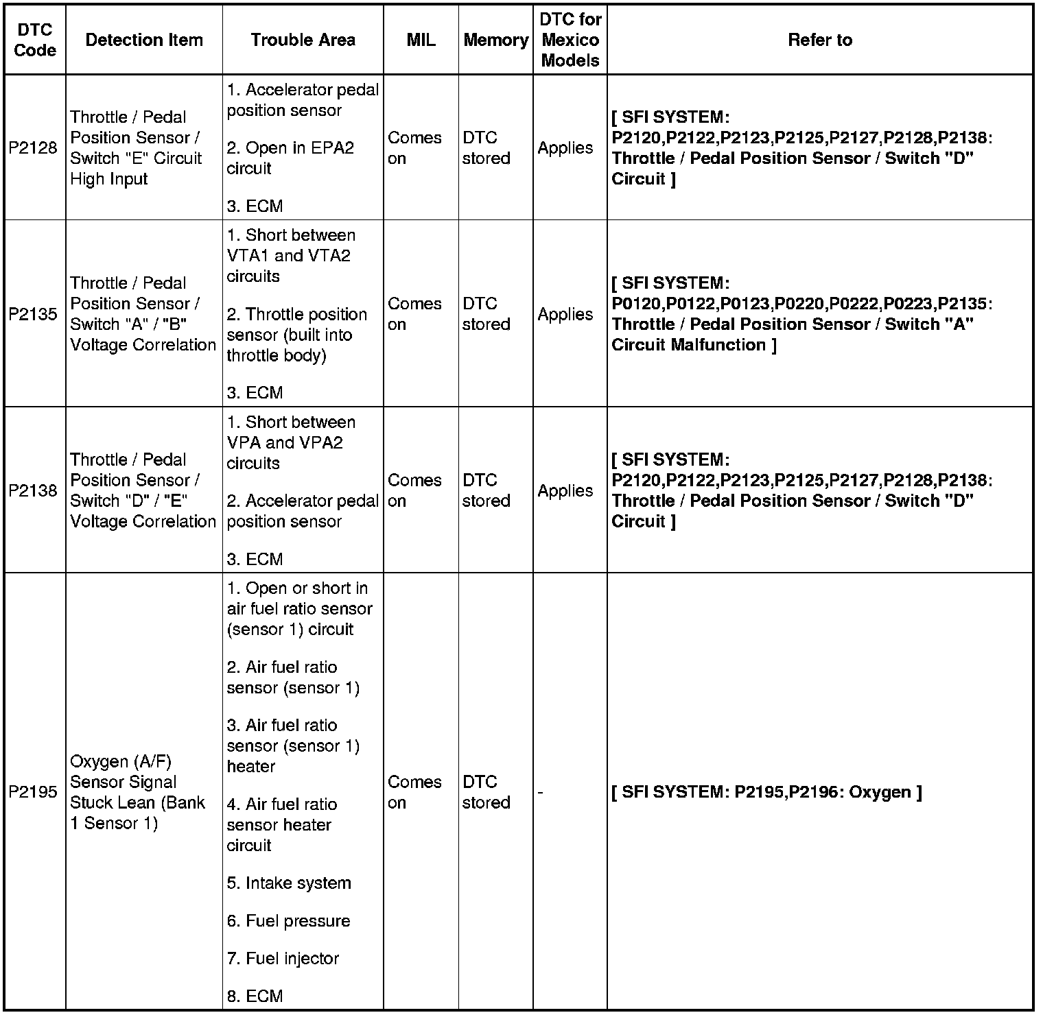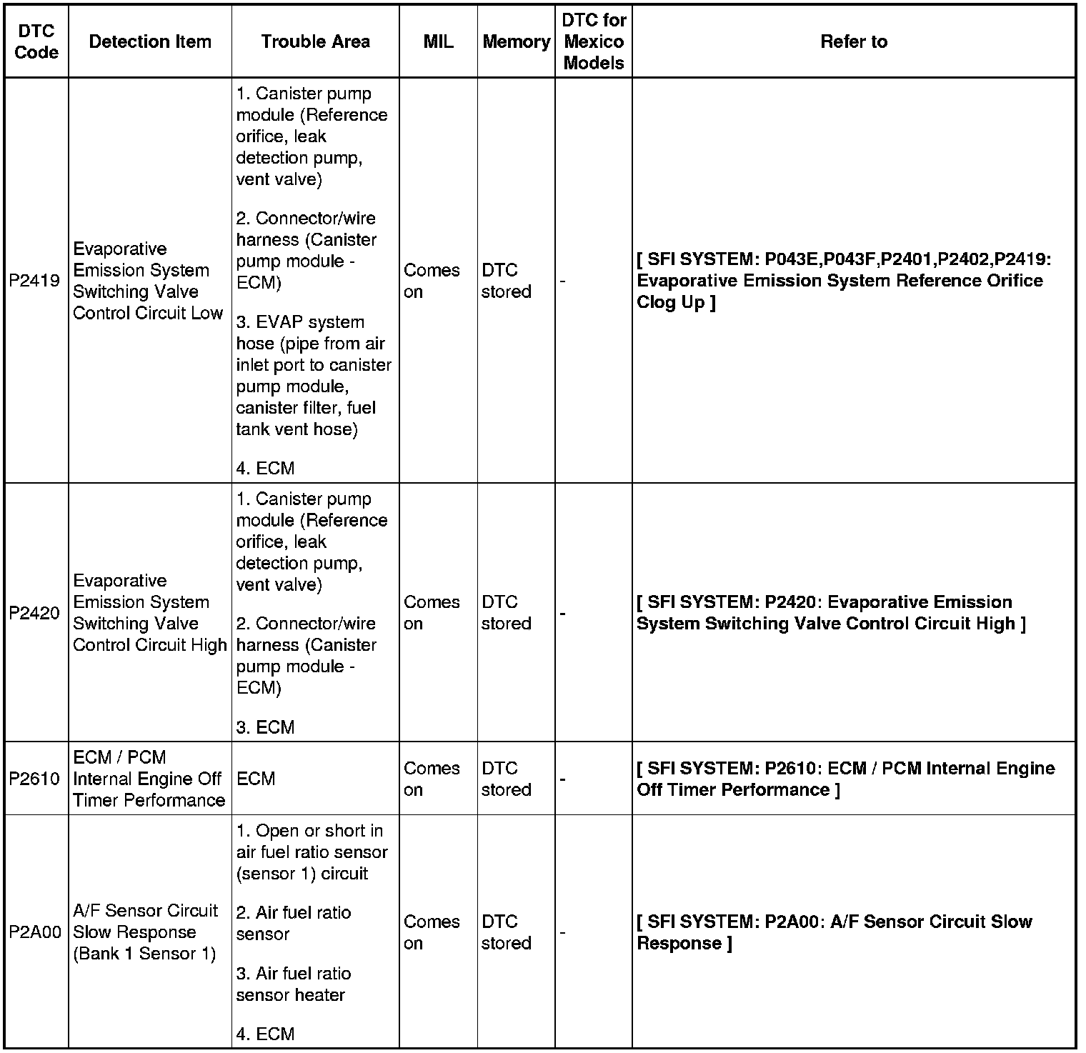 2ZR-FE ENGINE CONTROL: SFI SYSTEM: DIAGNOSTIC TROUBLE CODE CHART
