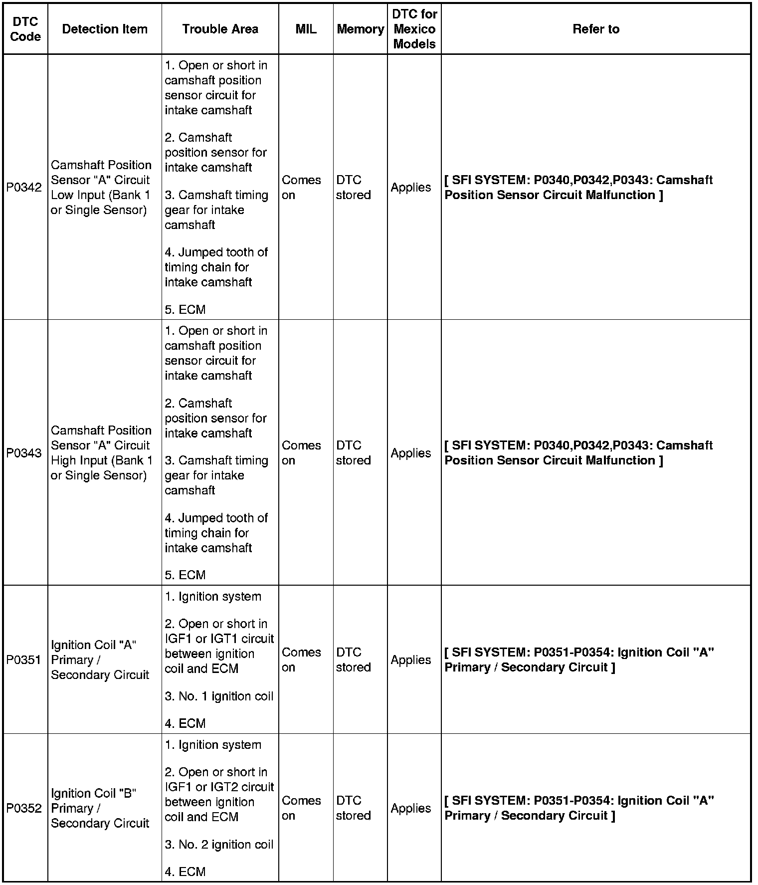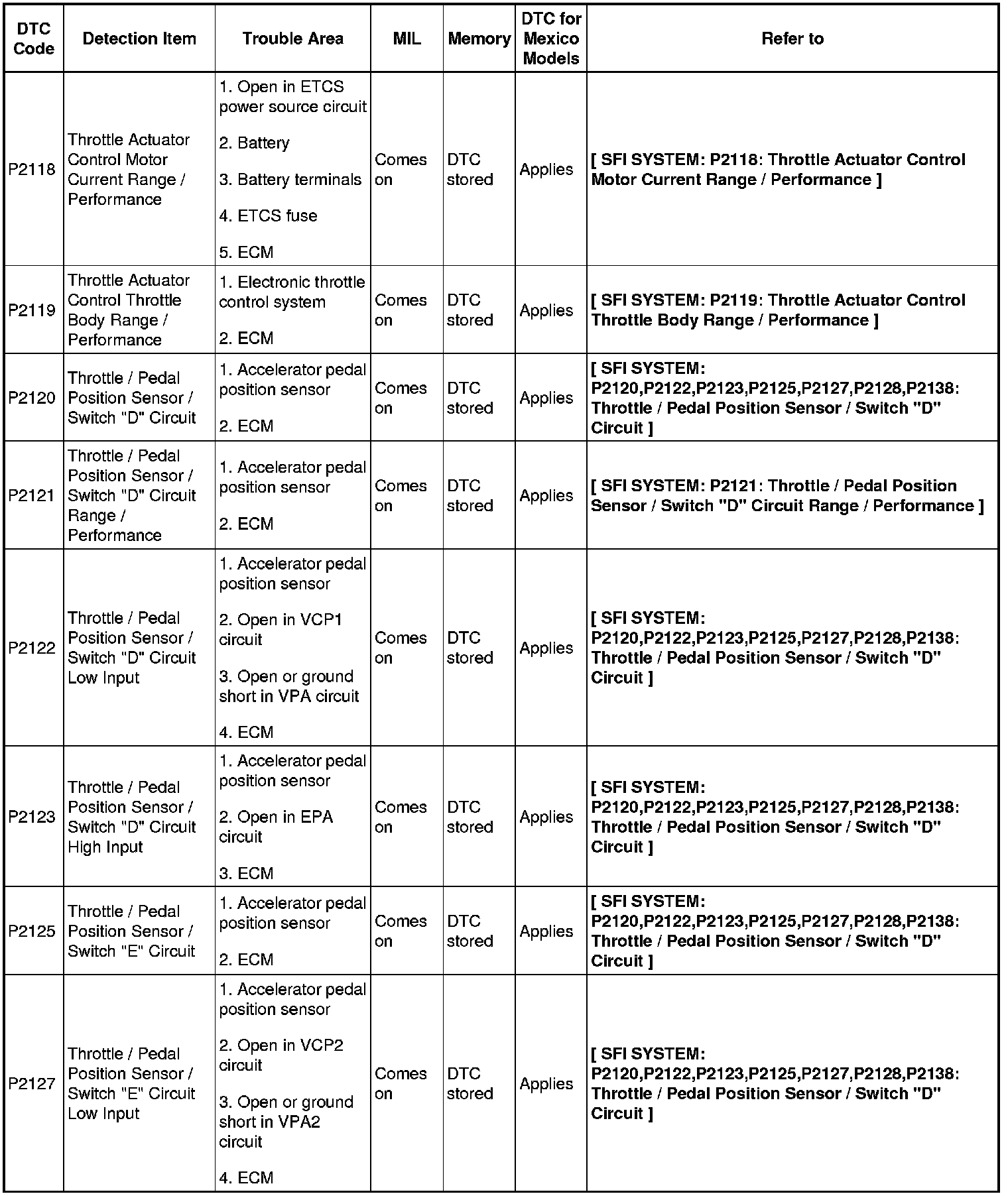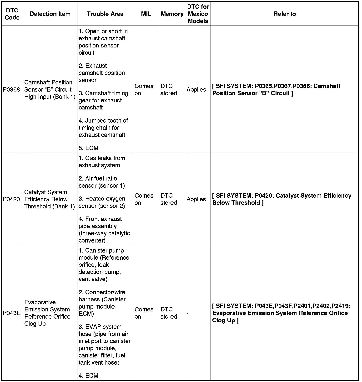 2ZR-FE ENGINE CONTROL: SFI SYSTEM: DIAGNOSTIC TROUBLE CODE CHART