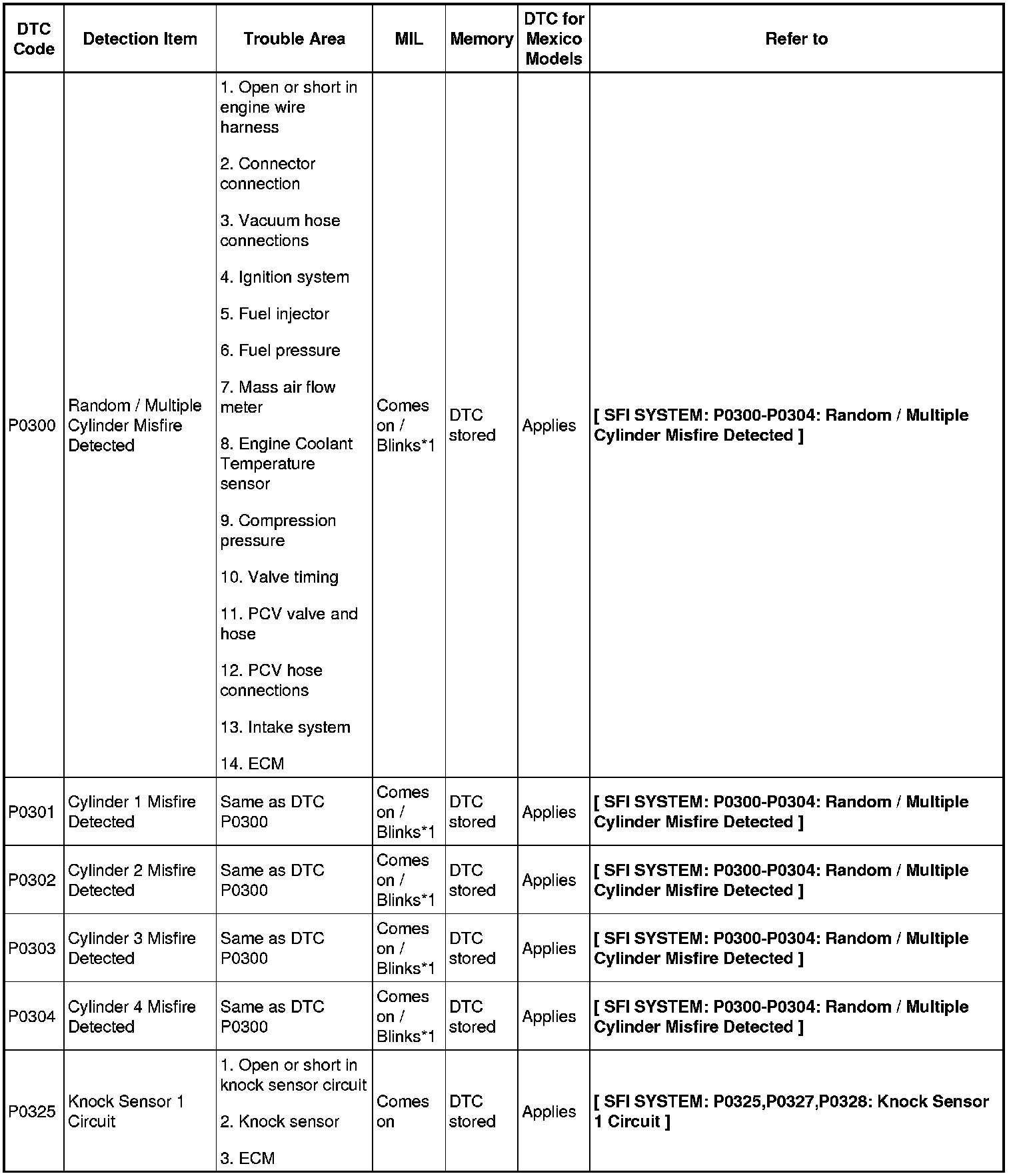 - *1: MIL flashes when a catalyst damaging misfire is detected.