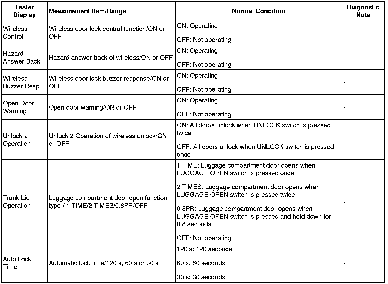 DOOR LOCK: WIRELESS DOOR LOCK CONTROL SYSTEM (w/ Smart Key System): DATA LIST / ACTIVE TEST