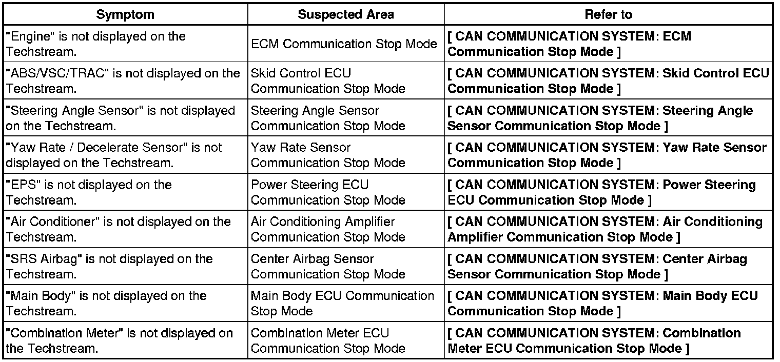 NETWORKING: CAN COMMUNICATION SYSTEM: PROBLEM SYMPTOMS TABLE