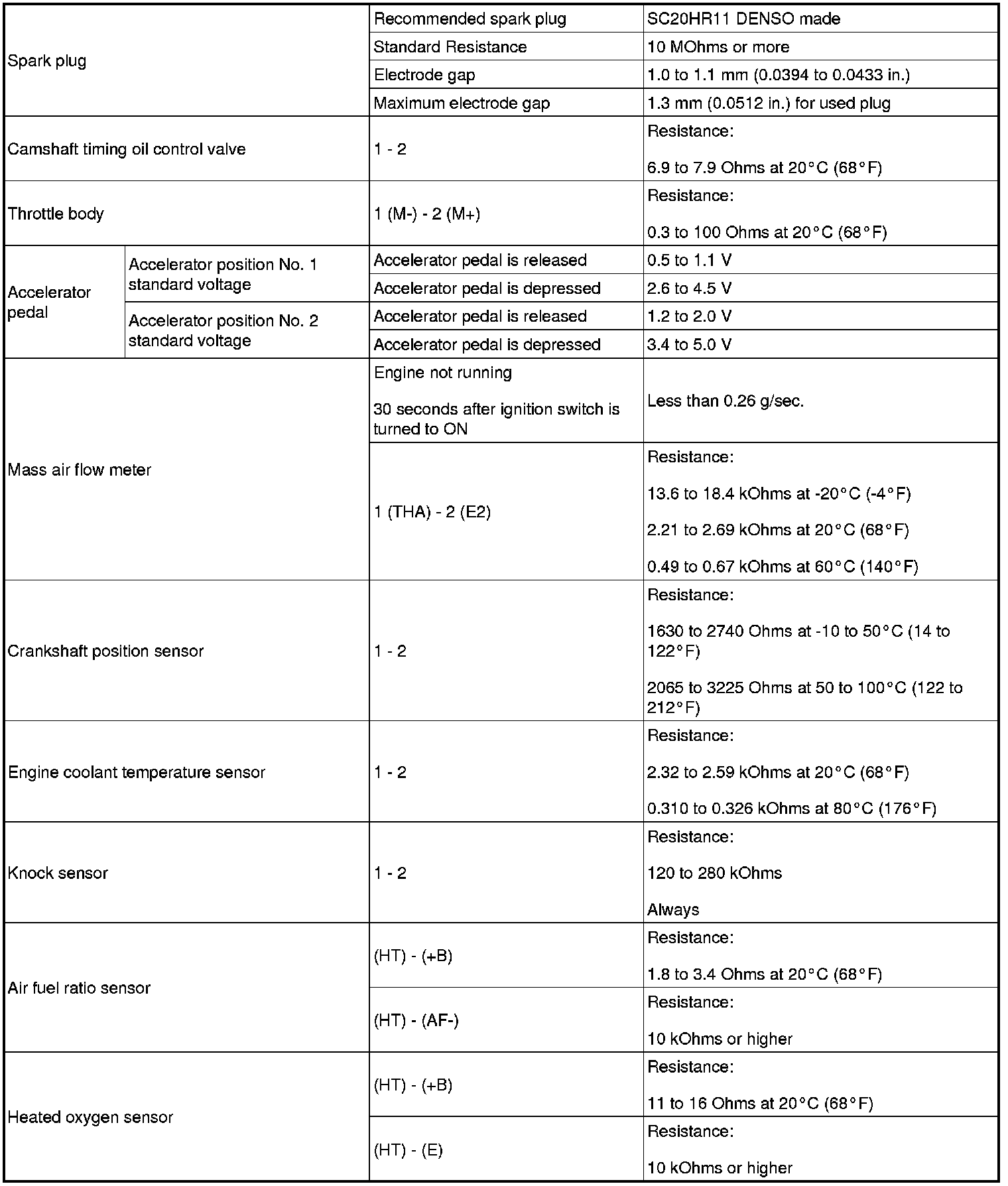 SPECIFICATIONS: 2ZR-FE ENGINE CONTROL: SERVICE DATA