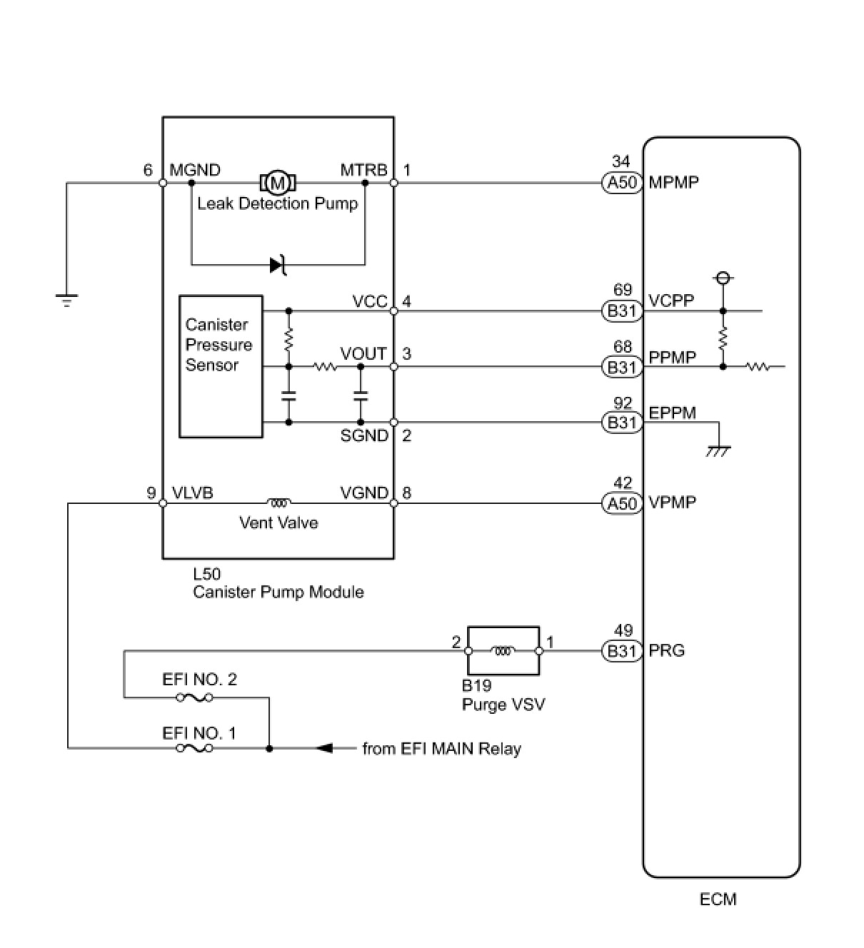 B -- INSPECT CANISTER PUMP MODULE (POWER SOURCE FOR VENT VALVE)