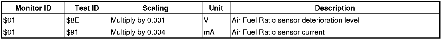 If you use a generic scan tool, multiply the value by the scaling value listed below.