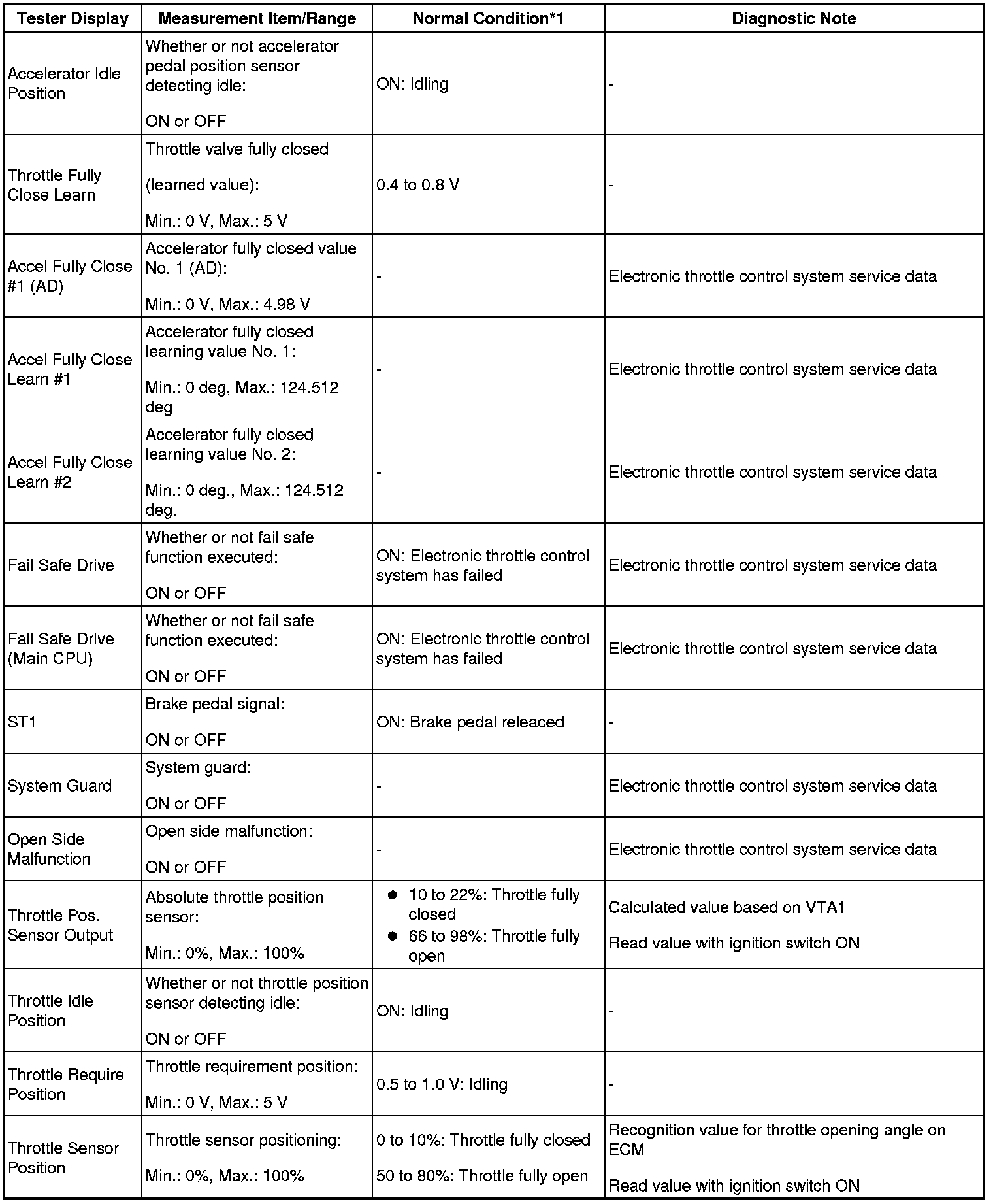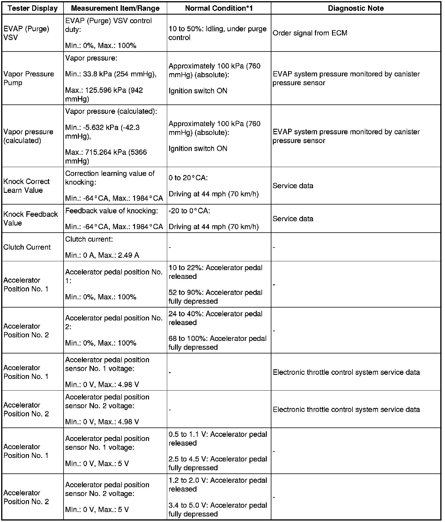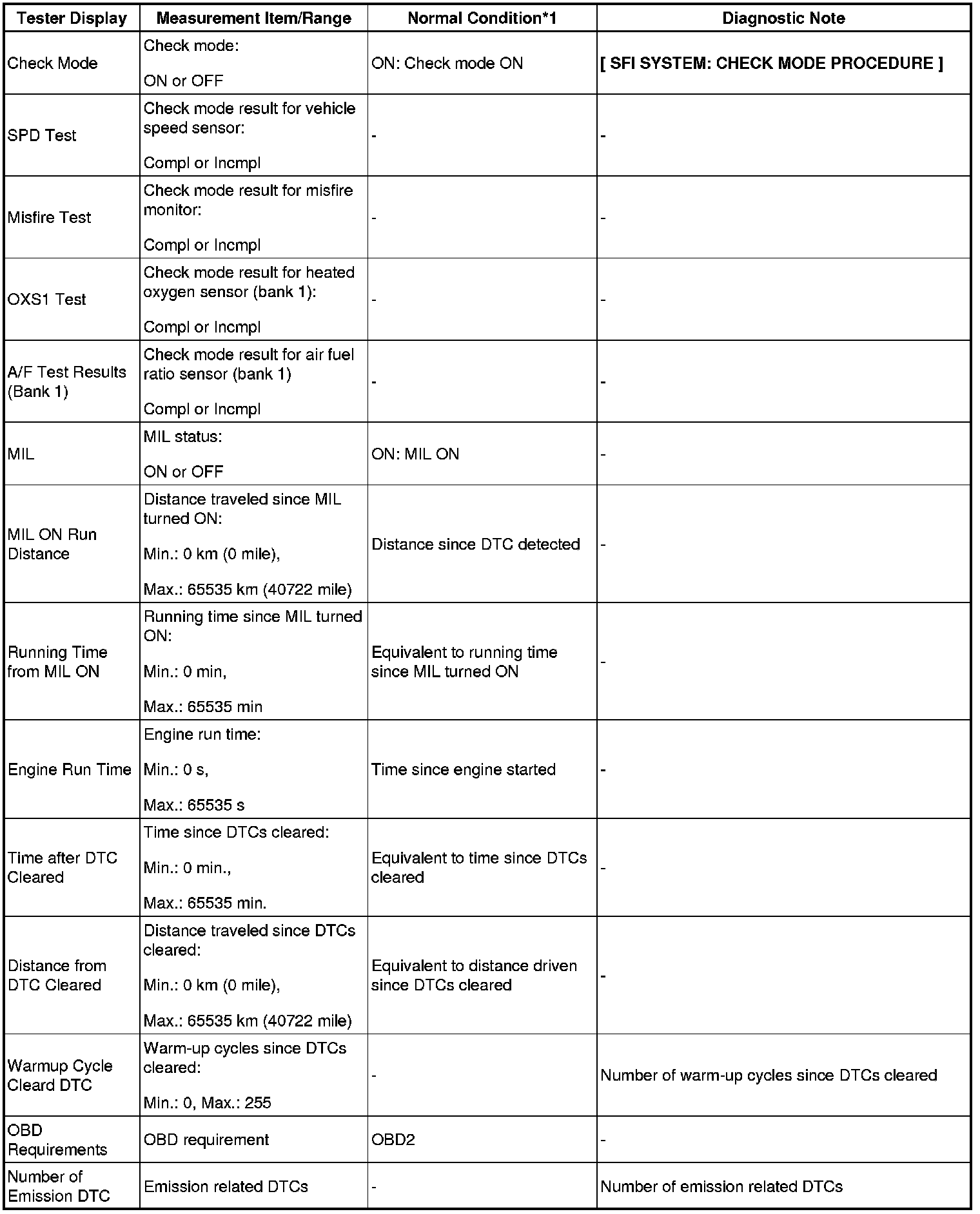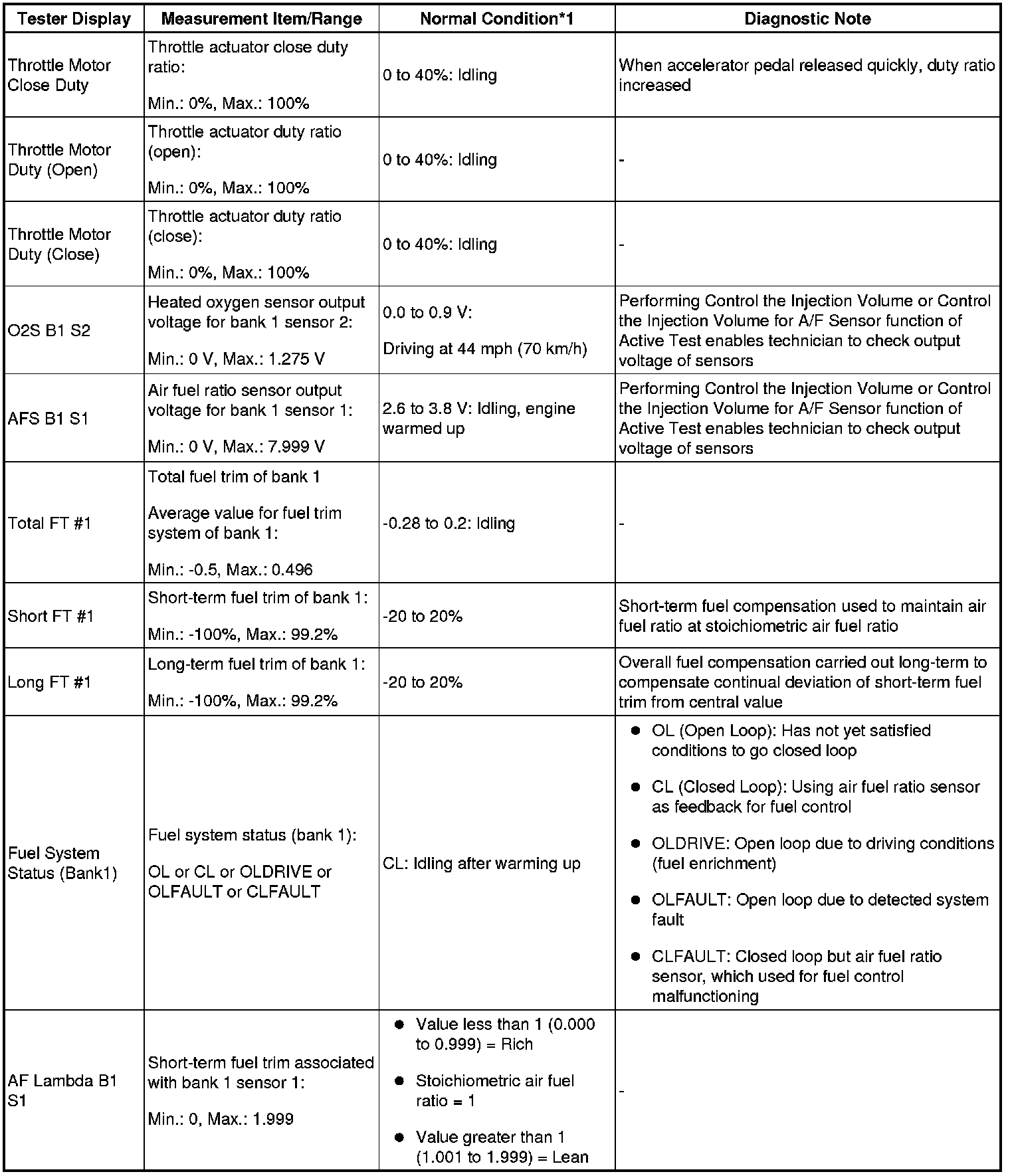 - *1: If no idling conditions are specified, the shift lever should be in N or P, and the A/C switch and all accessory switches should be off.