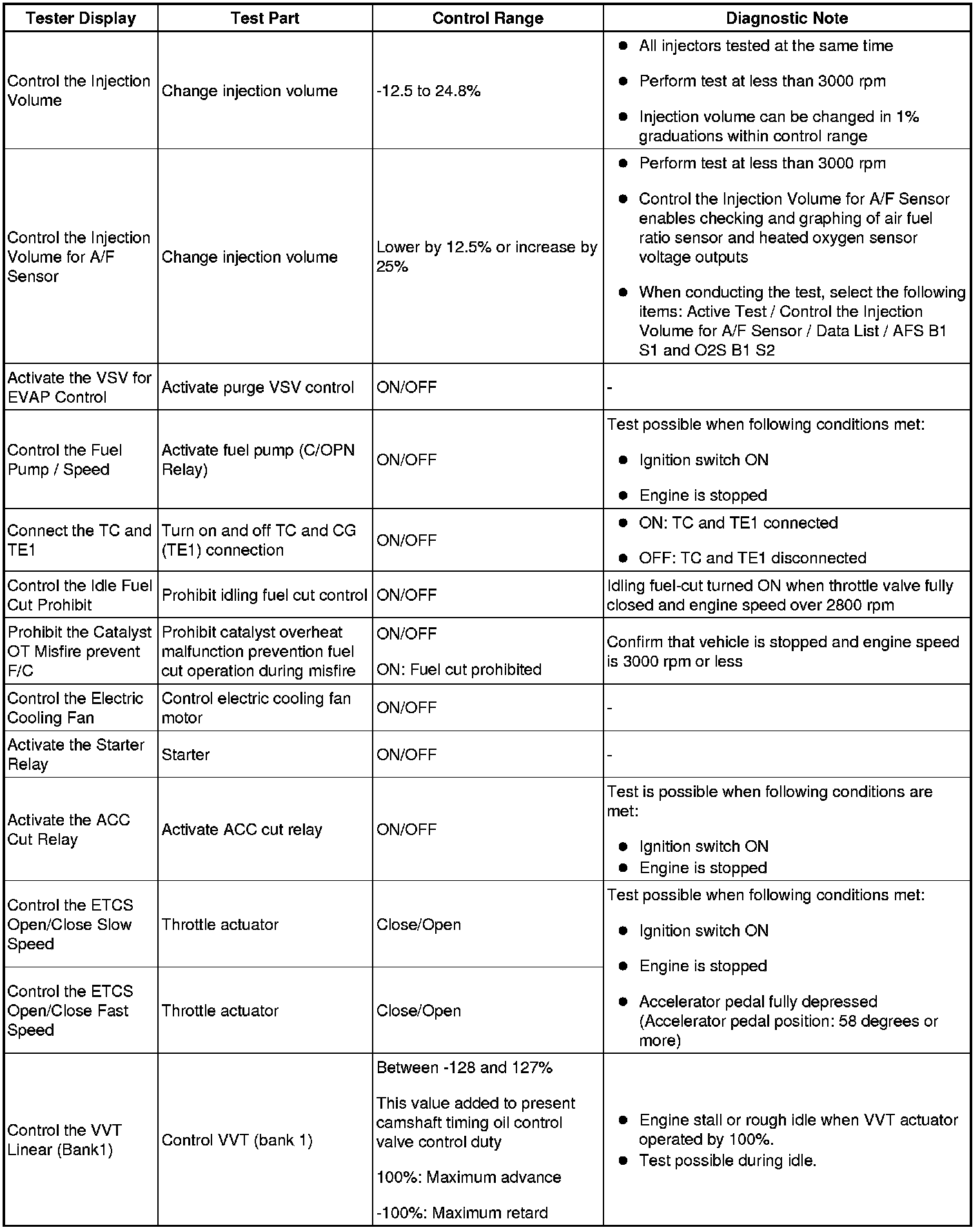 HINT: Using the Techstream to perform the Active Tests allows relays, VSVs, actuators and other items to be operated without removing any parts. This non-intrusive functional inspection can be very useful because intermittent operation may be discovered before parts or wiring is disturbed. Performing Active Tests early in troubleshooting is one way to save diagnostic time. Data List information can be displayed while performing Active Tests.