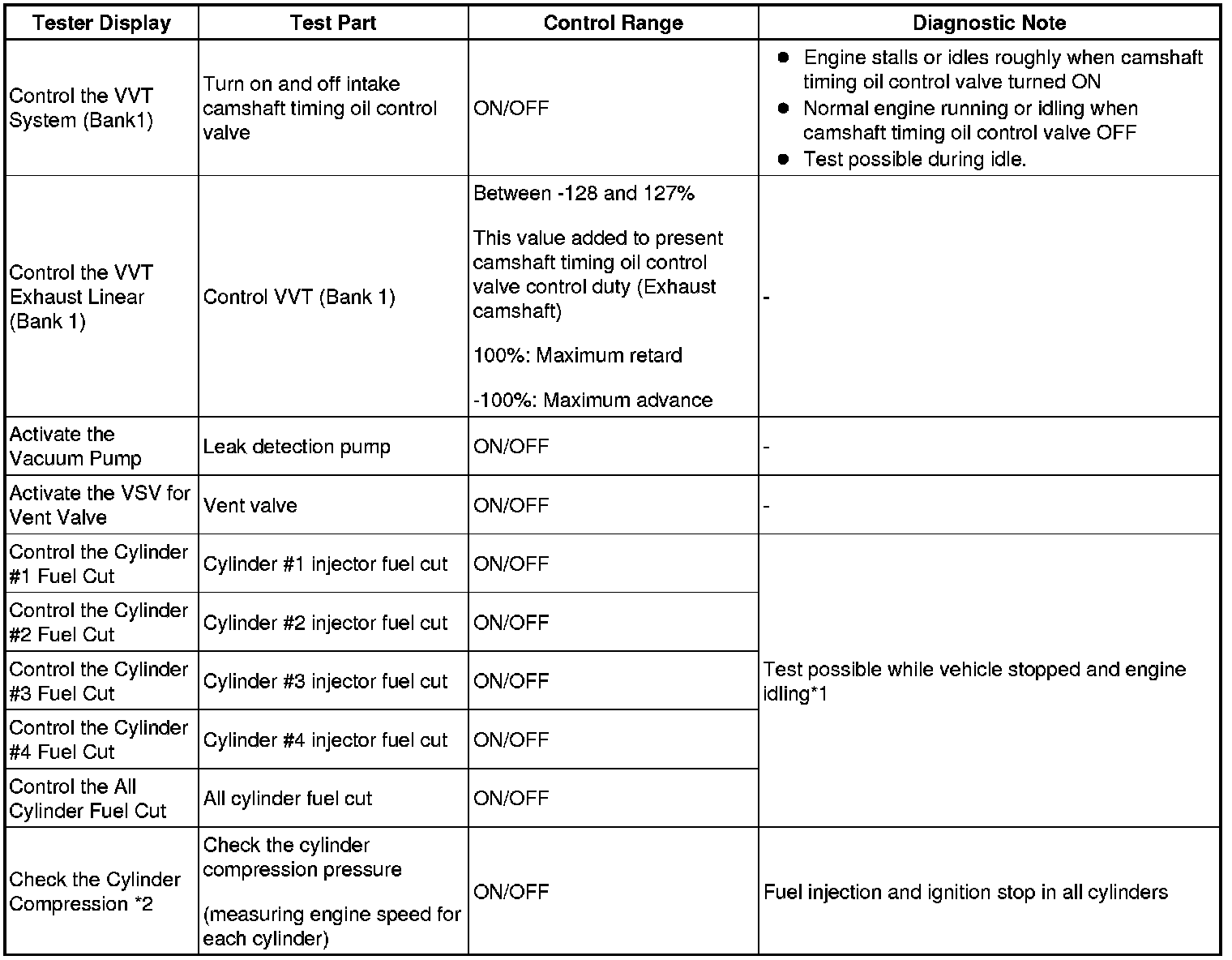 HINT: *2: While the Active Test item Check the Cylinder Compression is being performed, the fuel and ignition of all cylinders is cut. At this time, the ECM measures the speed of each cylinder while the engine is being cranked.