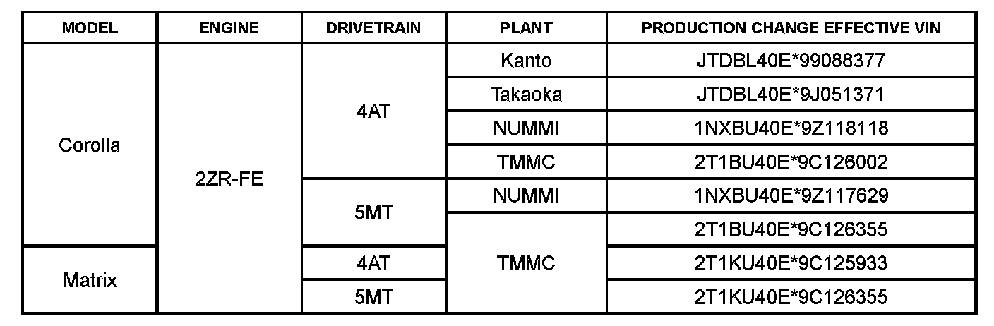 This TSB applies to vehicles produced BEFORE the Production Change Effective VINs shown.