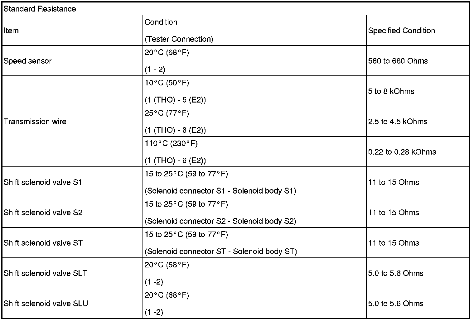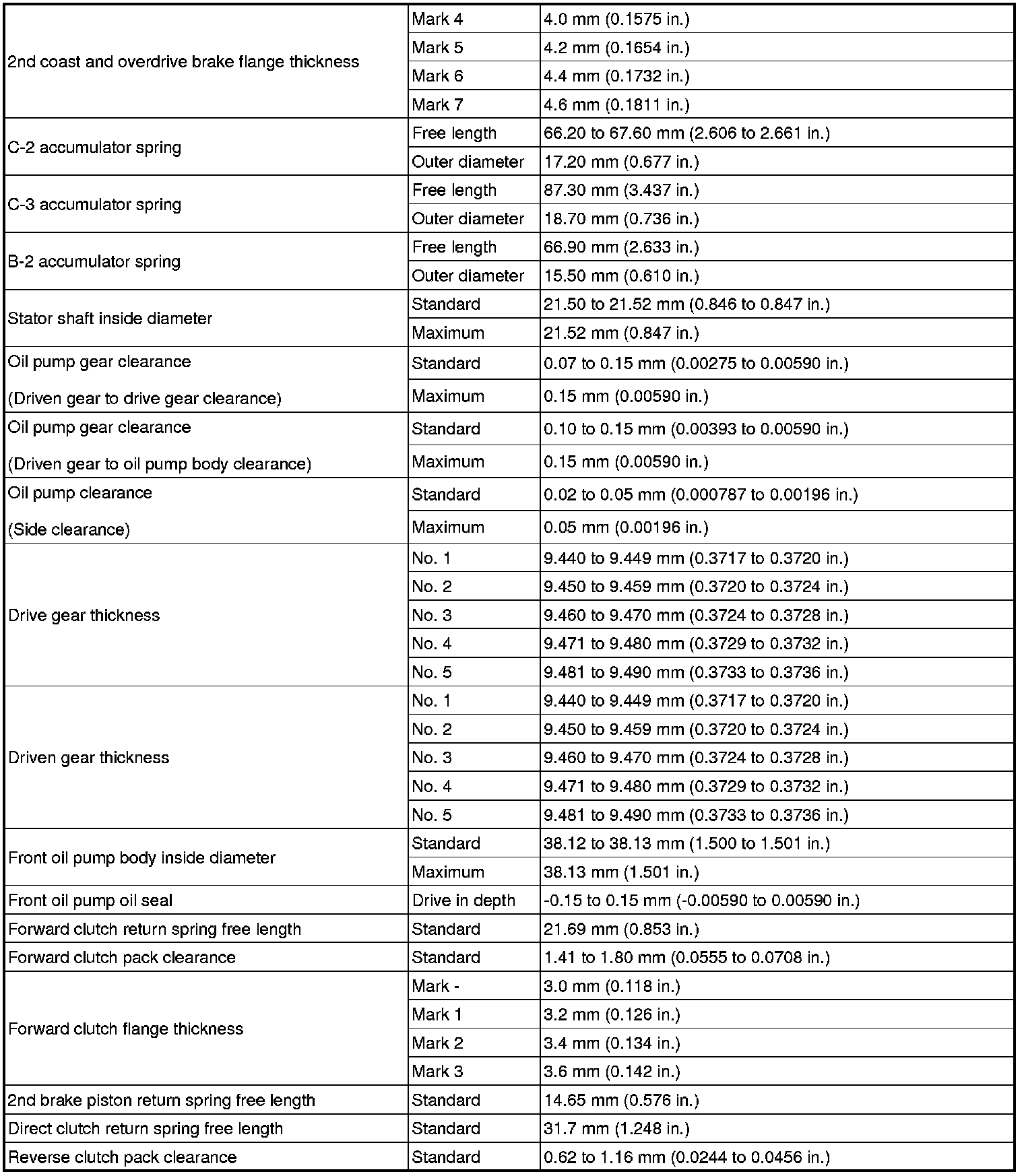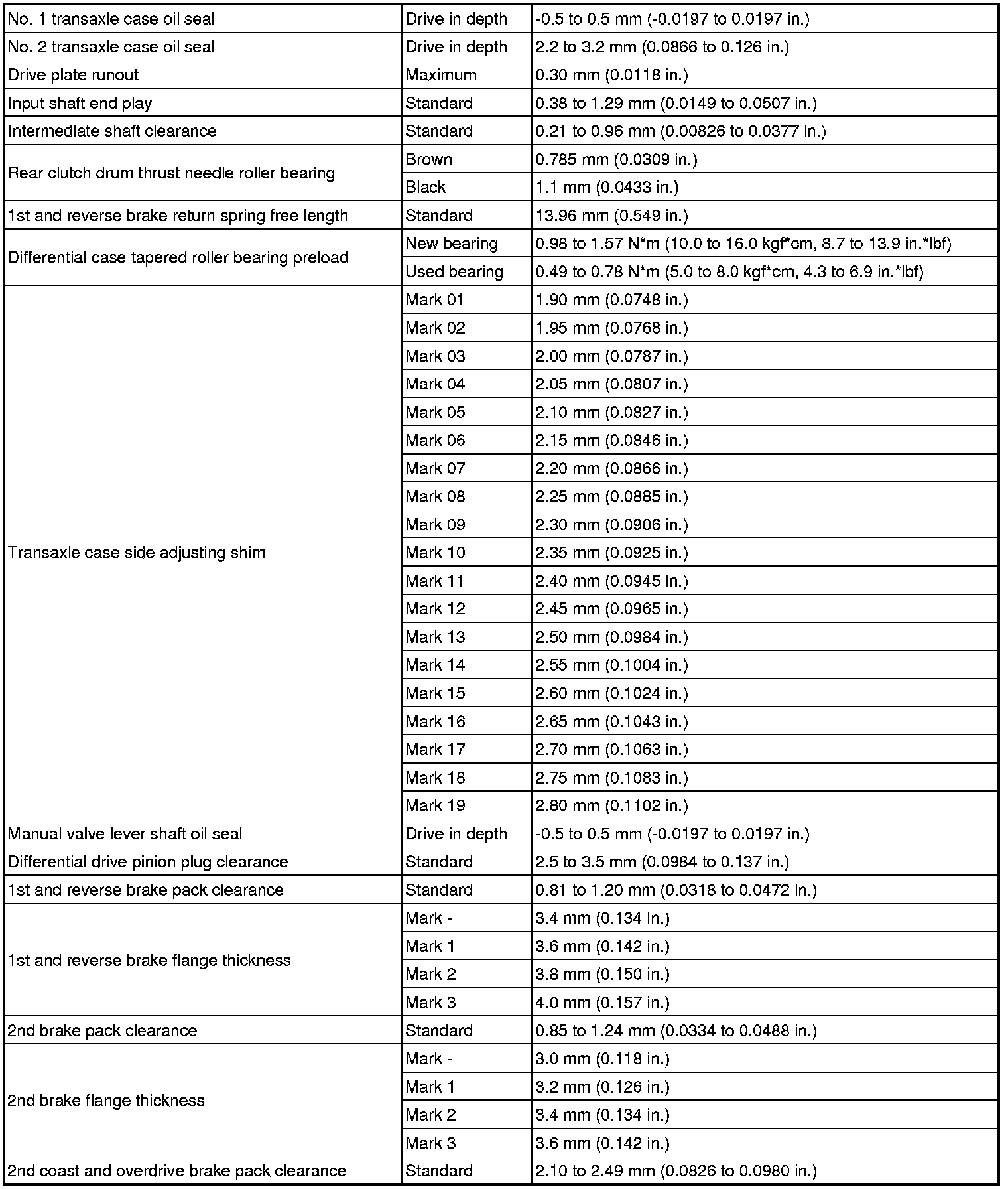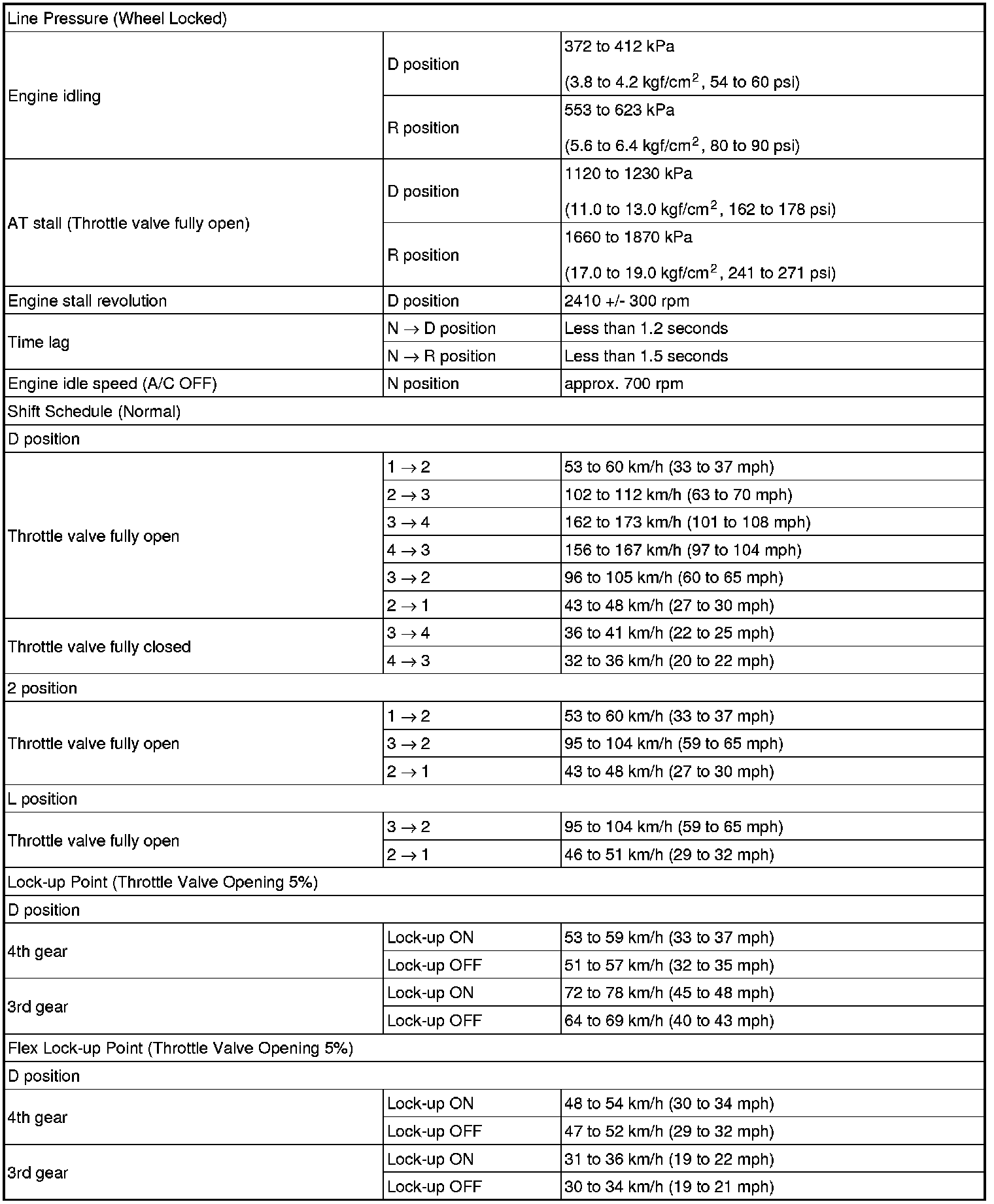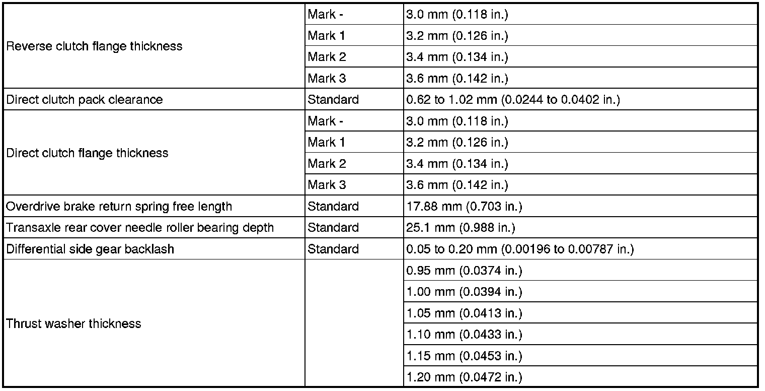 SPECIFICATIONS: U341E AUTOMATIC TRANSMISSION / TRANSAXLE: SERVICE DATA