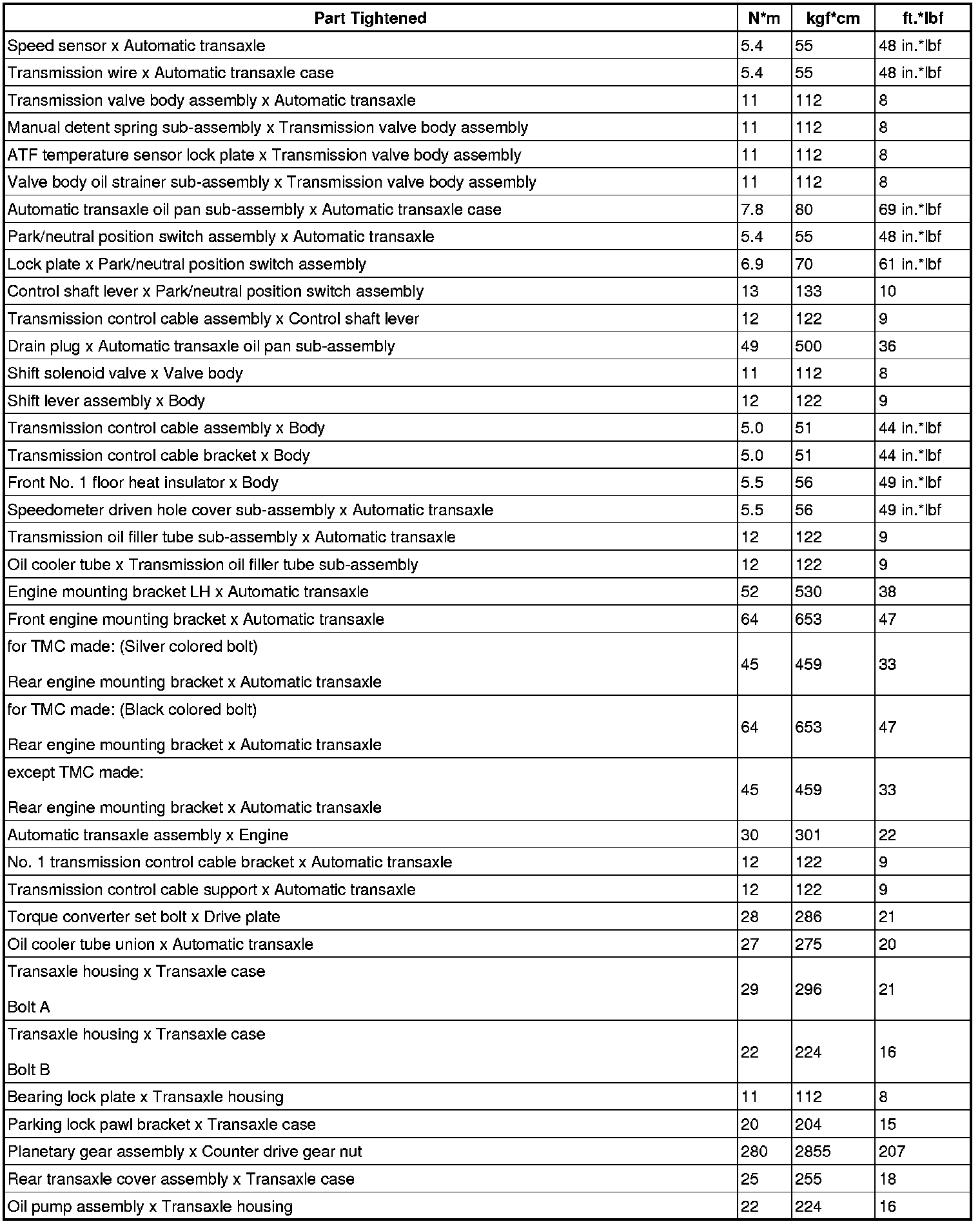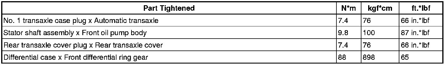 SPECIFICATIONS: U341E AUTOMATIC TRANSMISSION / TRANSAXLE: TORQUE SPECIFICATIONS