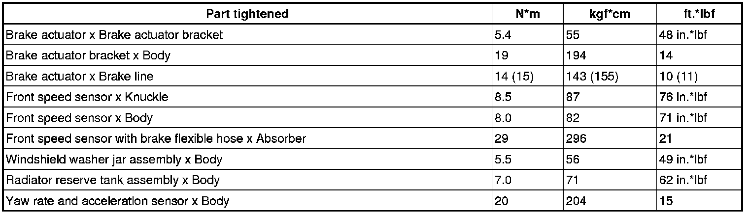 SPECIFICATIONS: BRAKE CONTROL / DYNAMIC CONTROL SYSTEMS: TORQUE SPECIFICATIONS