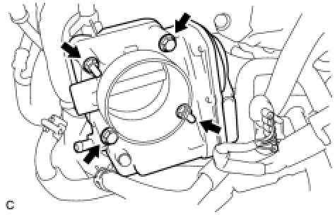 Install the throttle body assembly with the 2 bolts and 2 nuts.