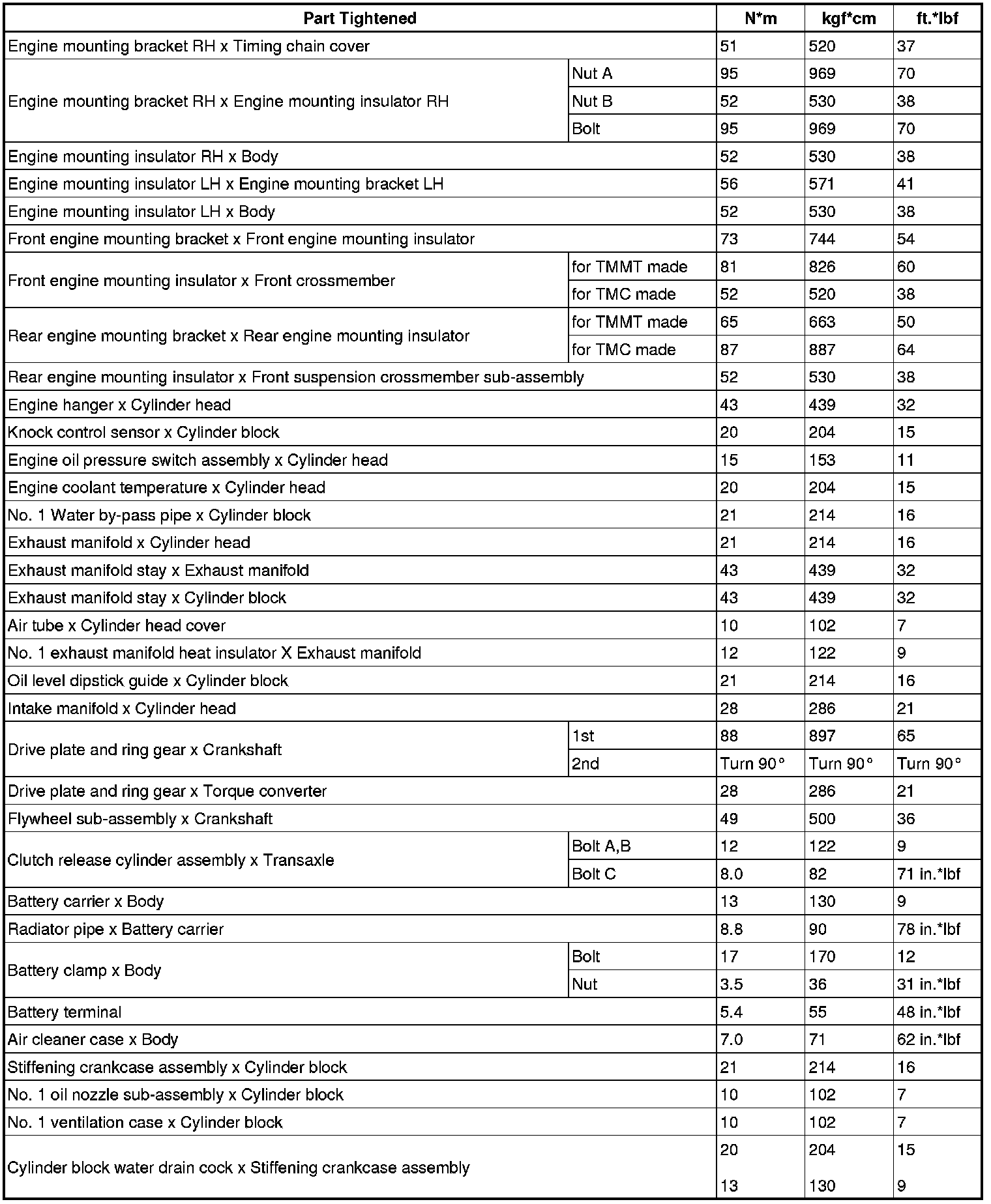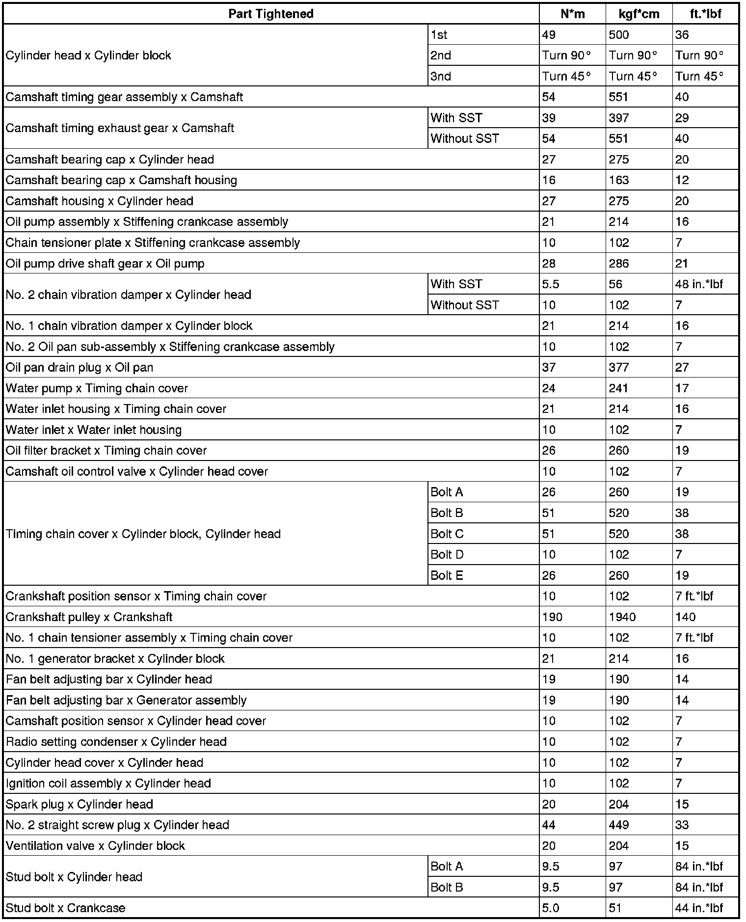 SPECIFICATIONS: 2ZR-FE ENGINE MECHANICAL: TORQUE SPECIFICATIONS
