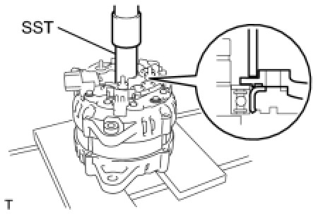 (a) Using SST and a press, slowly press in the generator coil assembly.