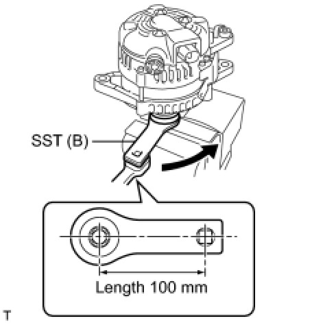 (f) Tighten the pulley by turning SST (B) in the direction shown in the illustration.