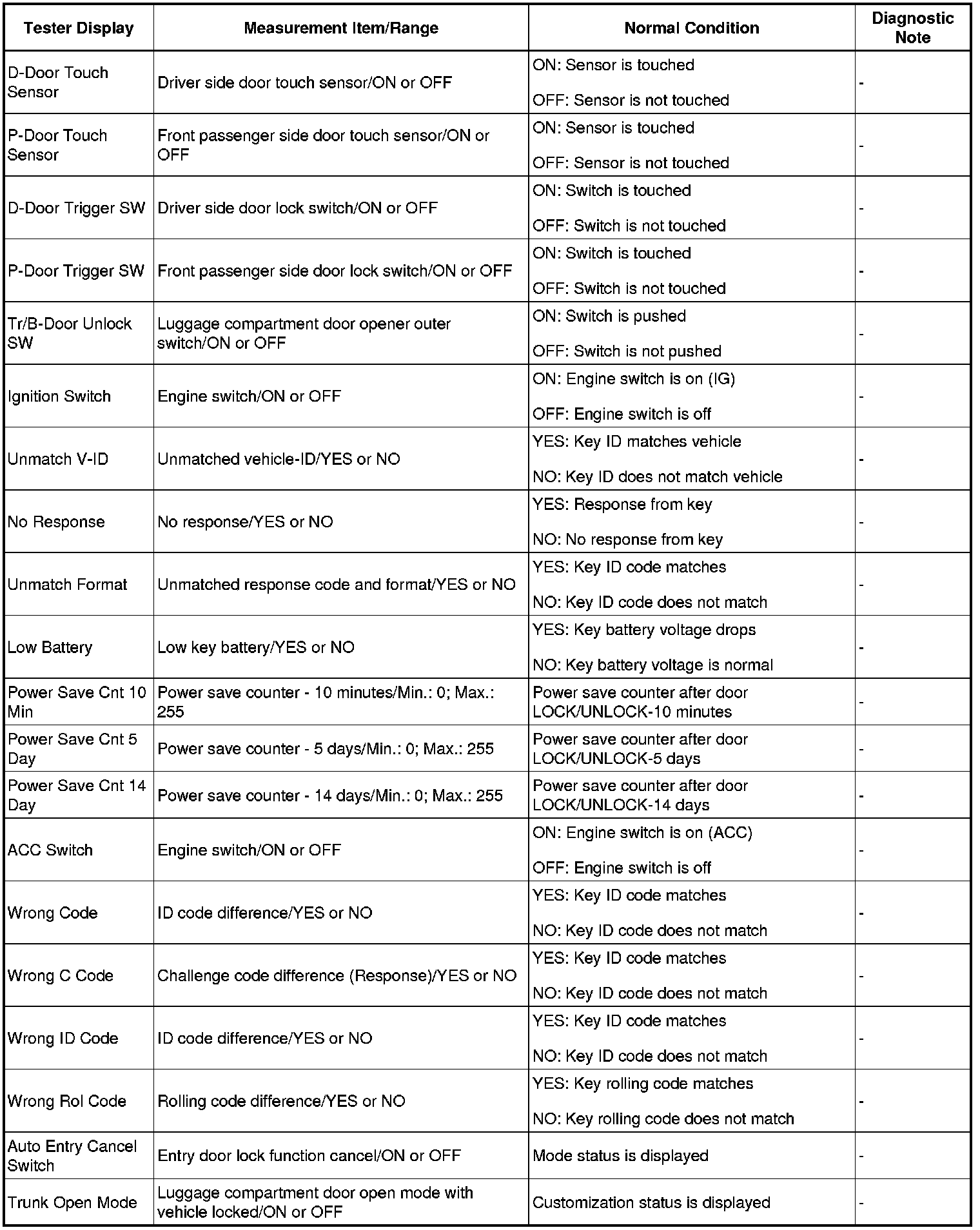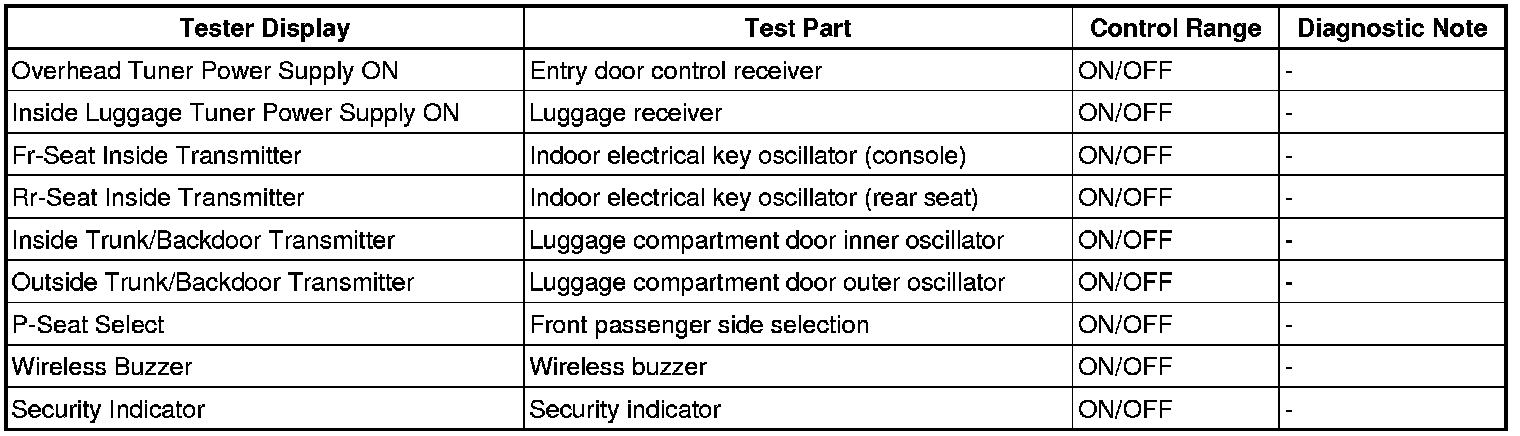 THEFT DETERRENT / KEYLESS ENTRY: SMART KEY SYSTEM (for Entry Function): DATA LIST / ACTIVE TEST