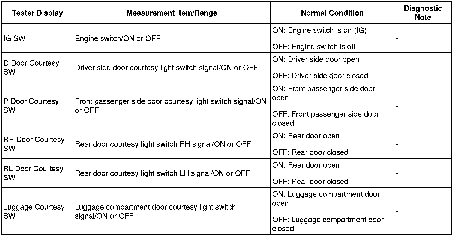 HINT: Using the Techstream to read the Data List allows the values or states of switches, sensors, actuators and other items to be read without removing any parts. This non-intrusive inspection can be very useful because intermittent conditions or signals may be discovered before parts or wiring is disturbed. Reading the Data List information early in troubleshooting is one way to save diagnostic time.
