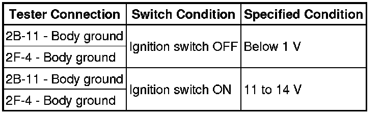 (a) Measure the voltage between the terminal of the instrument panel junction block and the body ground when the ignition switch is turned to ON and OFF.