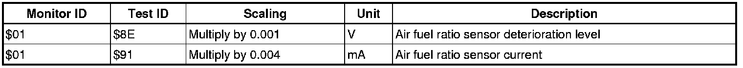 If you use a generic scan tool, multiply the value by the scaling value listed below.