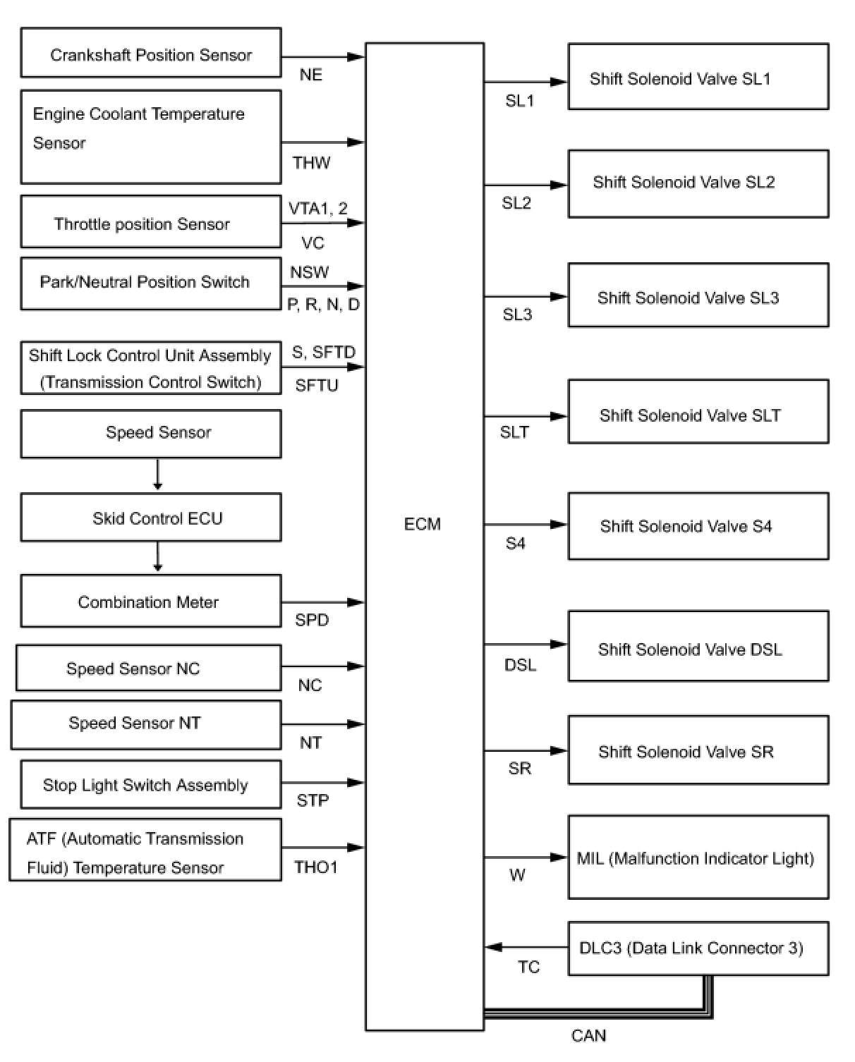 U250E AUTOMATIC TRANSMISSION / TRANSAXLE: AUTOMATIC TRANSAXLE SYSTEM: SYSTEM DIAGRAM