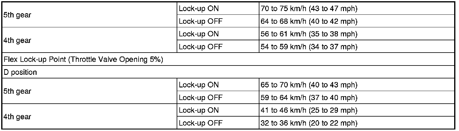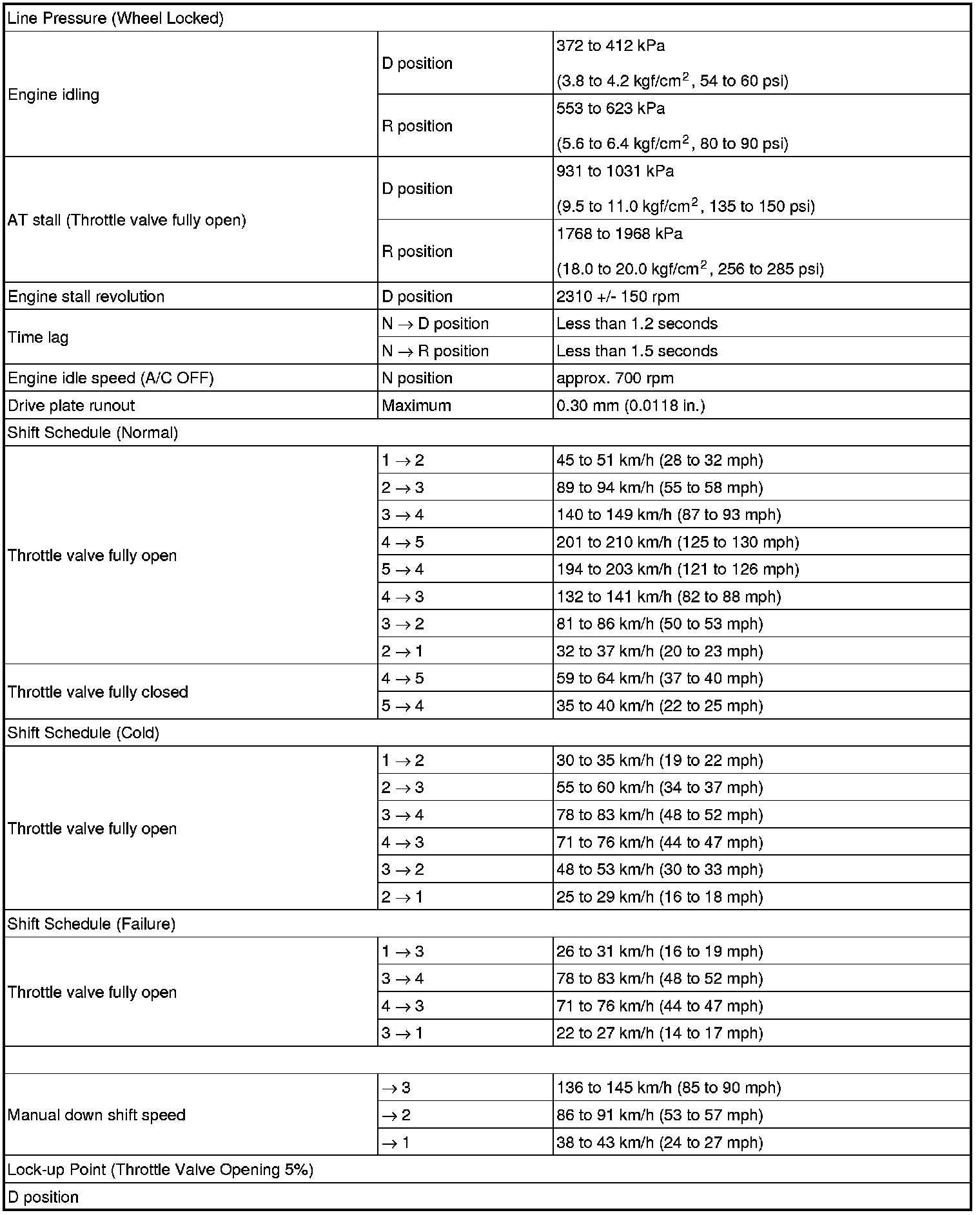 SPECIFICATIONS: U250E AUTOMATIC TRANSMISSION / TRANSAXLE: SERVICE DATA