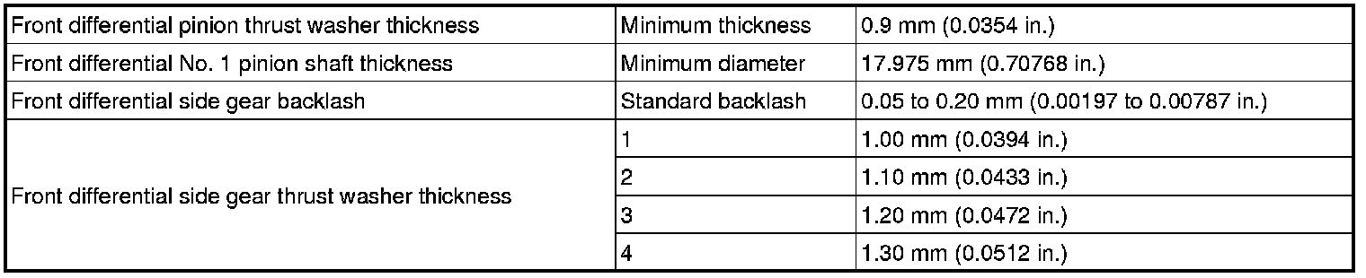 SPECIFICATIONS: E351 MANUAL TRANSMISSION / TRANSAXLE: SERVICE DATA