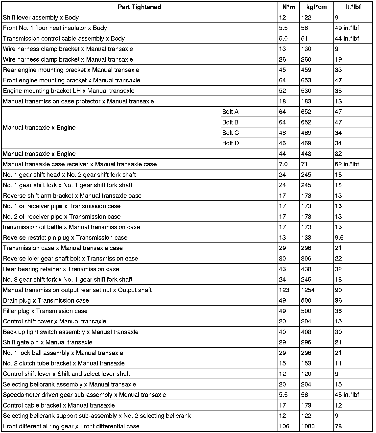 SPECIFICATIONS: E351 MANUAL TRANSMISSION / TRANSAXLE: TORQUE SPECIFICATIONS