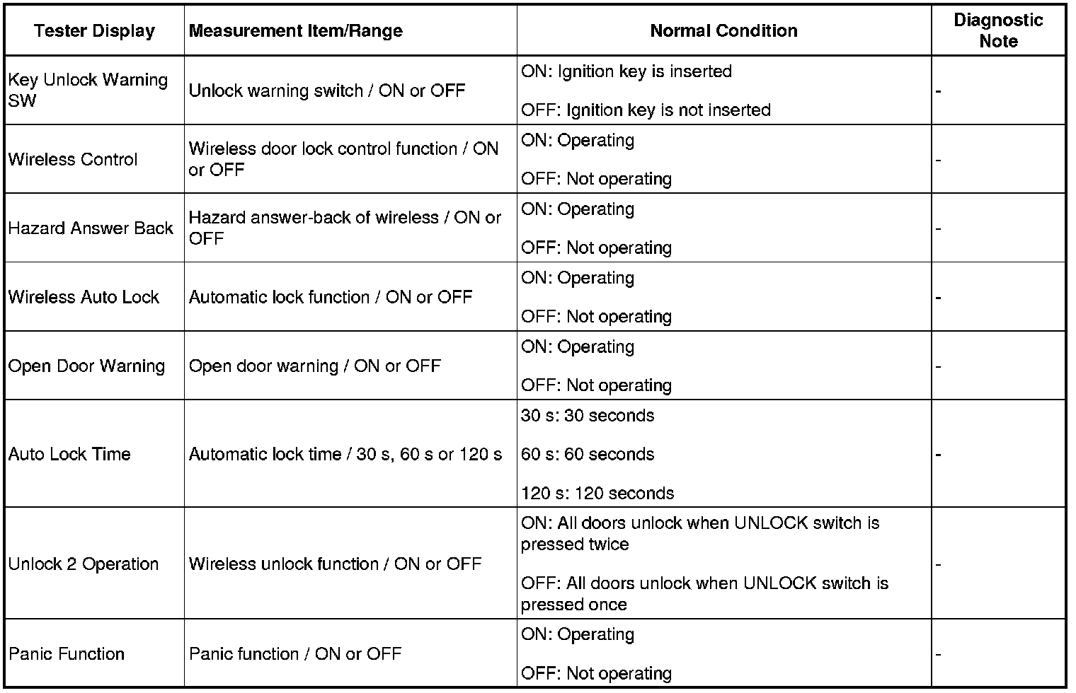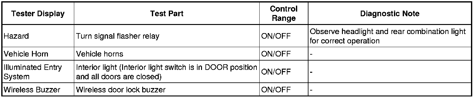 DOOR LOCK: WIRELESS DOOR LOCK CONTROL SYSTEM: DATA LIST / ACTIVE TEST