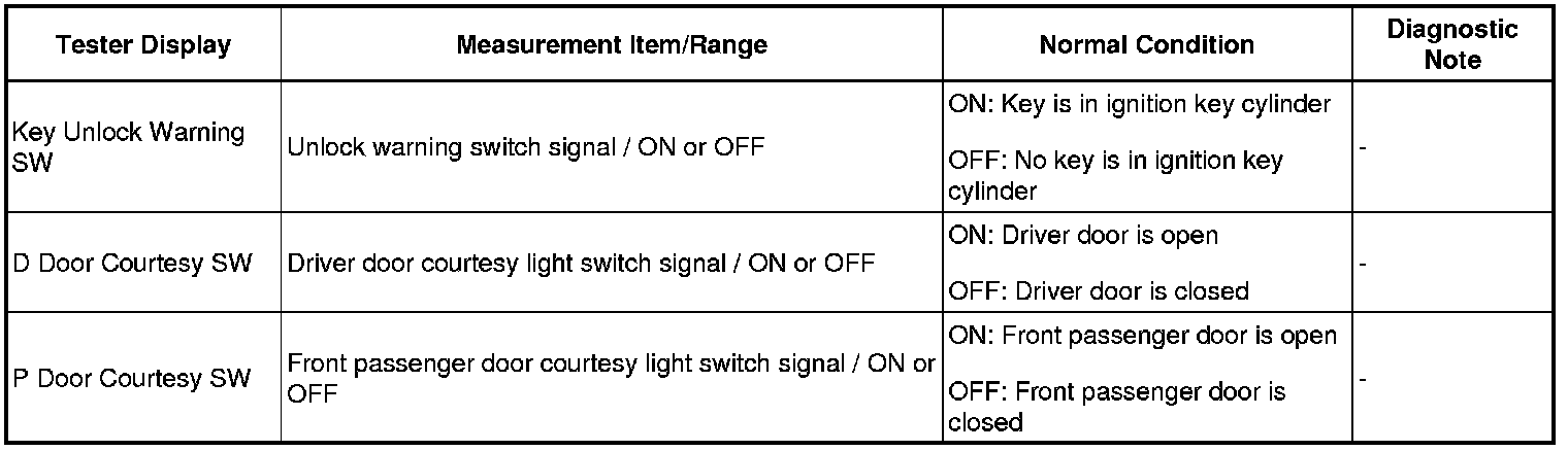 1. READ VALUE USING TECHSTREAM (UNLOCK WARNING SWITCH)