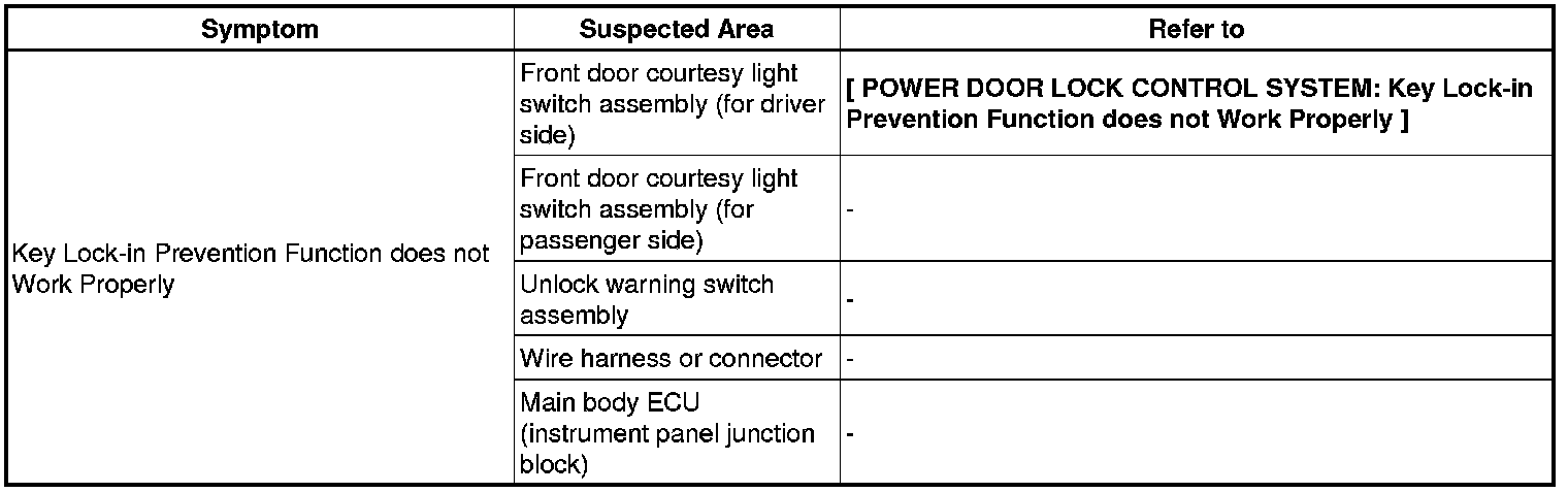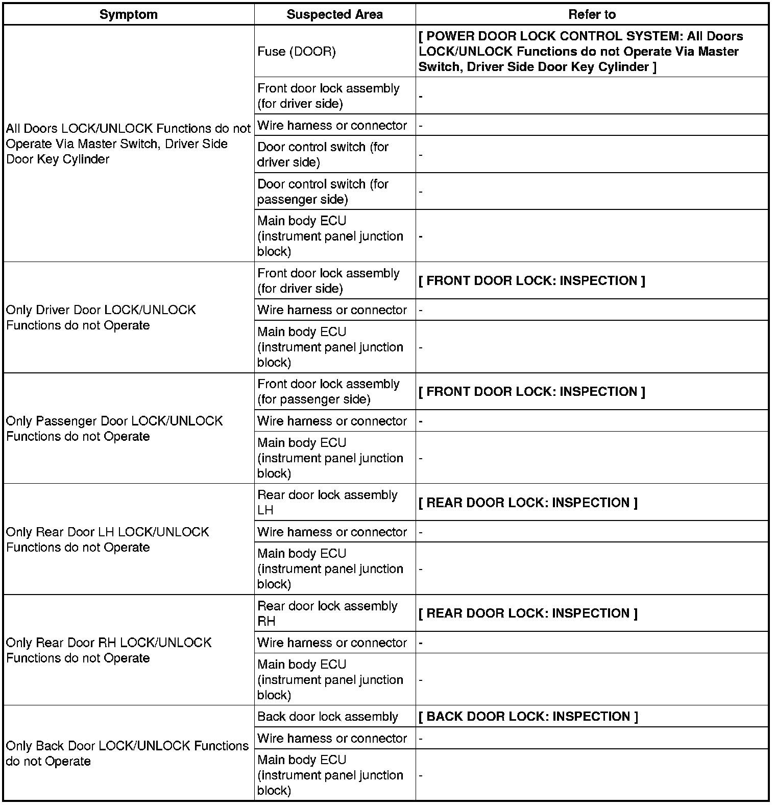 DOOR LOCK: POWER DOOR LOCK CONTROL SYSTEM: PROBLEM SYMPTOMS TABLE