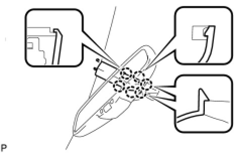 (a) Engage the 6 claws and temporarily install the inner rear view mirror cover.