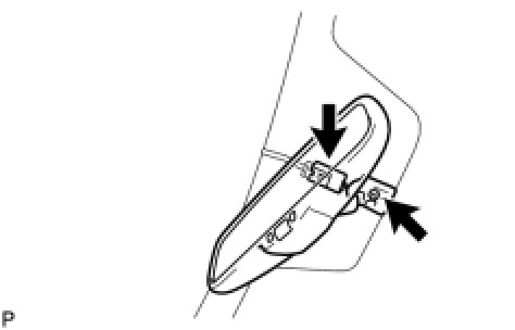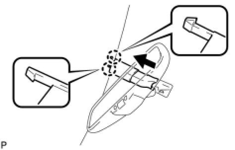 (b) Slide the inner rear view mirror cover and engage the 2 claws in the direction indicated by narrow shown in the illustration to install the cover.