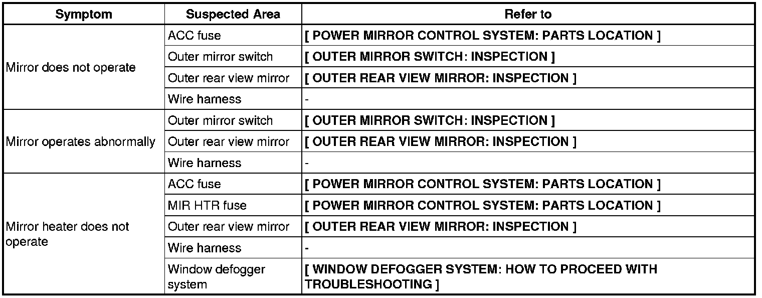 MIRROR (EXT): POWER MIRROR CONTROL SYSTEM: PROBLEM SYMPTOMS TABLE