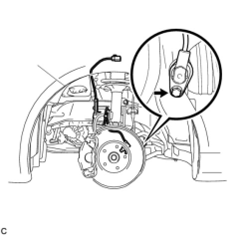 - Tighten the brake flexible hose and front speed sensor together with the bolt. Make sure that the front speed sensor is positioned over the flexible hose.