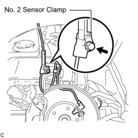 (c) Remove the bolt and No. 2 sensor clamp from the body.