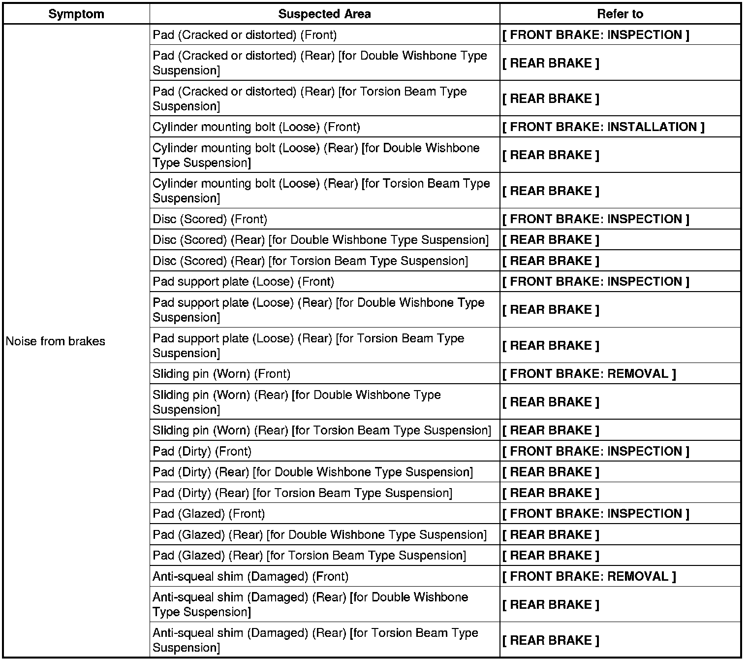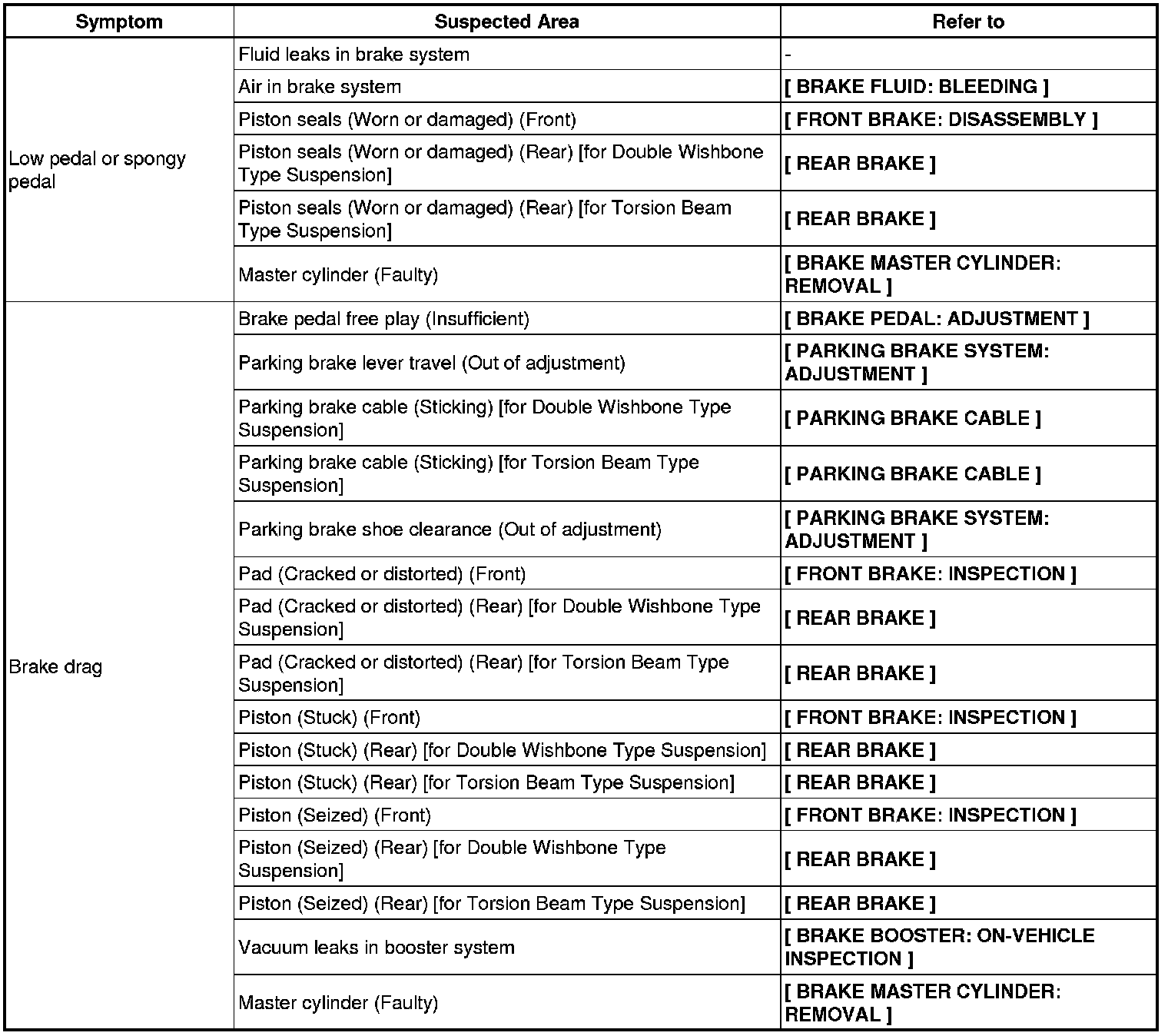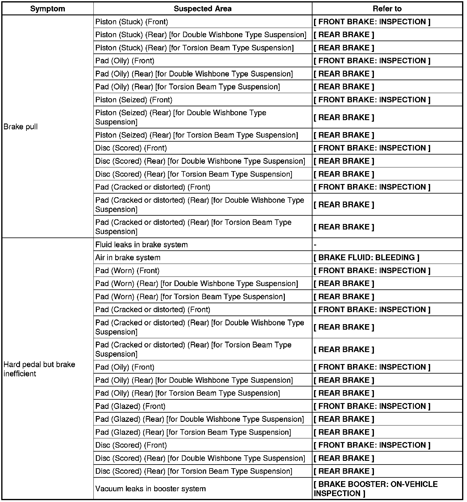 BRAKE SYSTEM (OTHER): BRAKE SYSTEM: PROBLEM SYMPTOMS TABLE