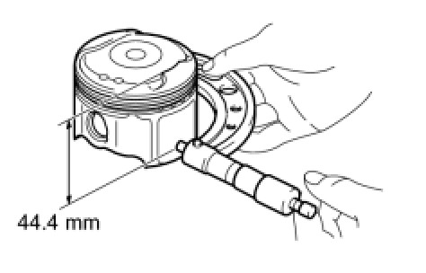 (d) Using a micrometer, measure the piston diameter at right angles to the piston pin hole, and at the piston 44.4 mm (1.748 in.) from the piston head.