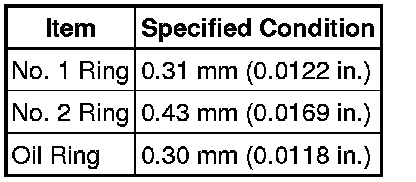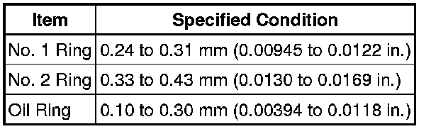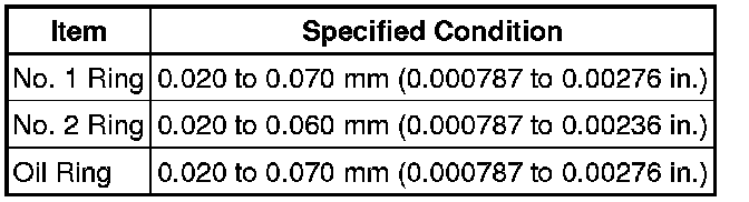 (a) Using a feeler gauge, measure the clearance between a new piston ring and the wall of the ring groove.