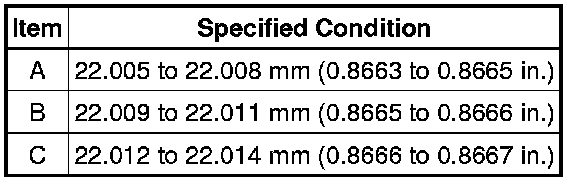 22.005 to 22.014 mm (0.8663 to 0.8667 in.)
