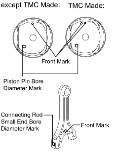 (d) Subtract the piston pin diameter measurement from the piston pin bore diameter measurement.