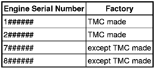 Check the engine serial number. Confirm the factory at which the engine was manufactured according to the following table.