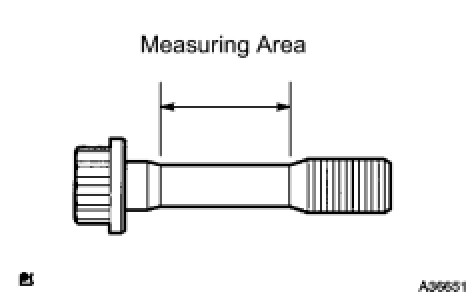 If the diameter is less than the minimum, replace the bolt.