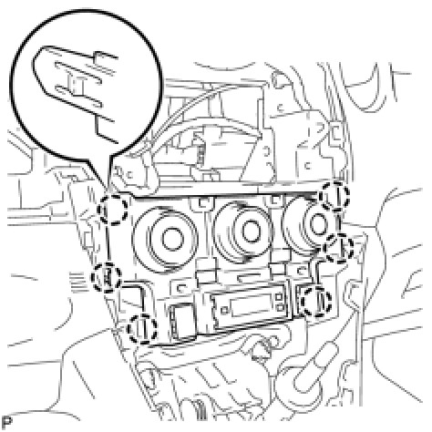 (d) Engage the 6 claws to install the air conditioning panel assembly.