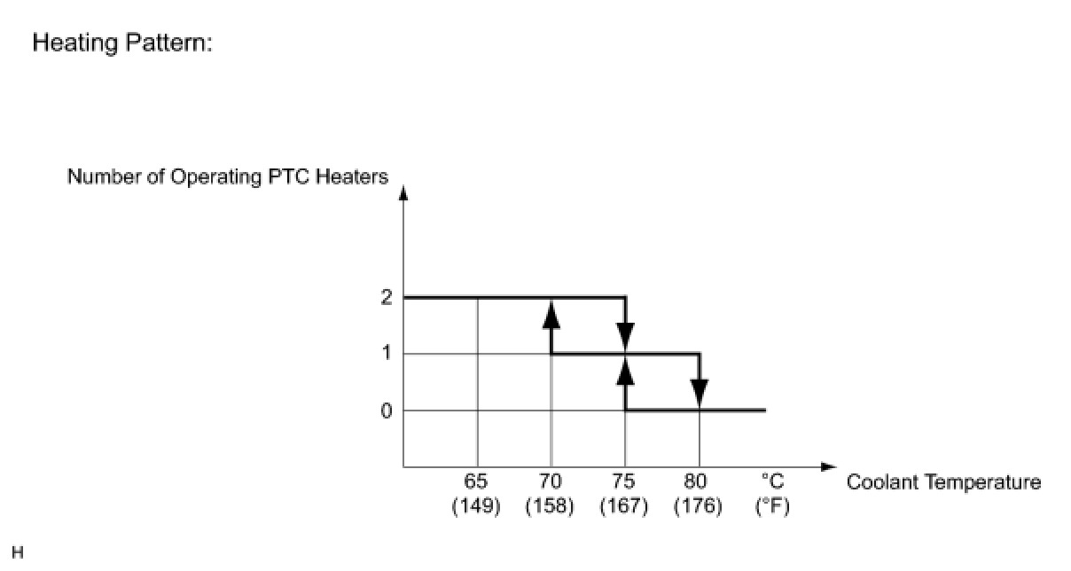 For example, the number of the operating PTC heaters varies by the water temperature as in the graph below.