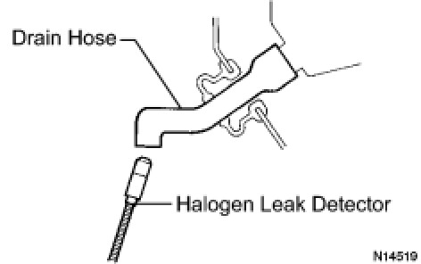 - When bringing the halogen leak detector close to the drain hose, make sure that the halogen leak detector does not react to volatile gases.