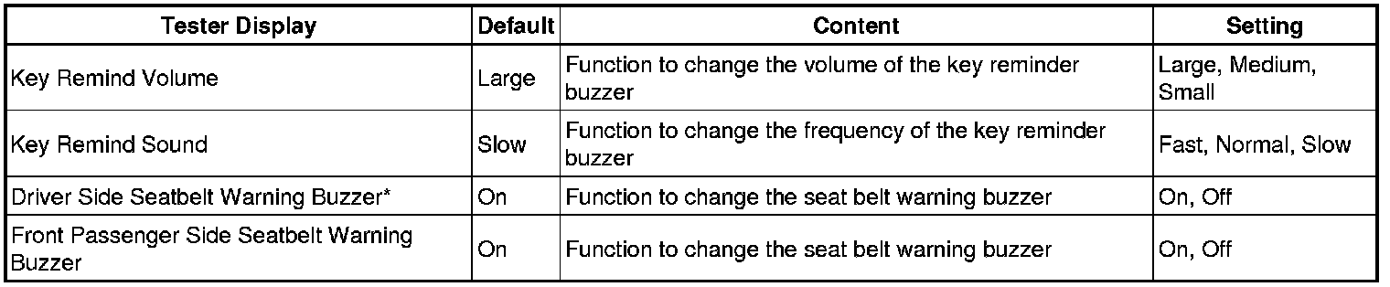 HINT: *: This setting is only valid for the buzzer which sounds at 20 km/h (12 mph) or more.