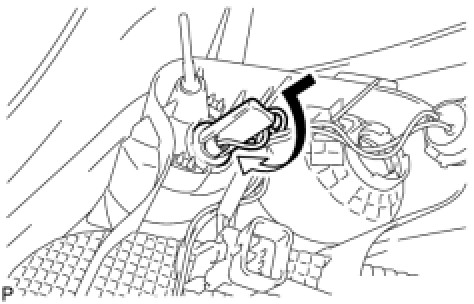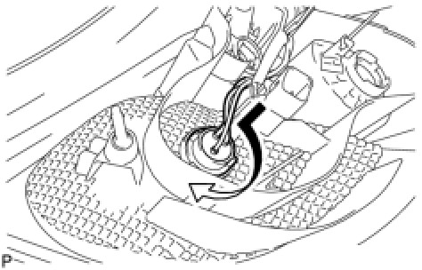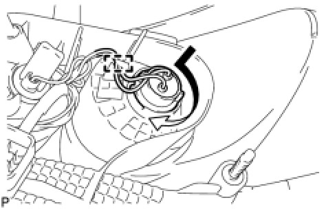 (b) Turn the back up light bulb and the rear combination light socket and wire in the direction indicated by the arrow and install them as a unit.