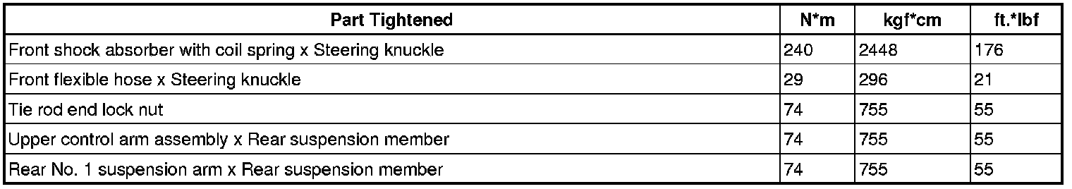 SPECIFICATIONS: ALIGNMENT / HANDLING DIAGNOSIS: TORQUE SPECIFICATIONS
